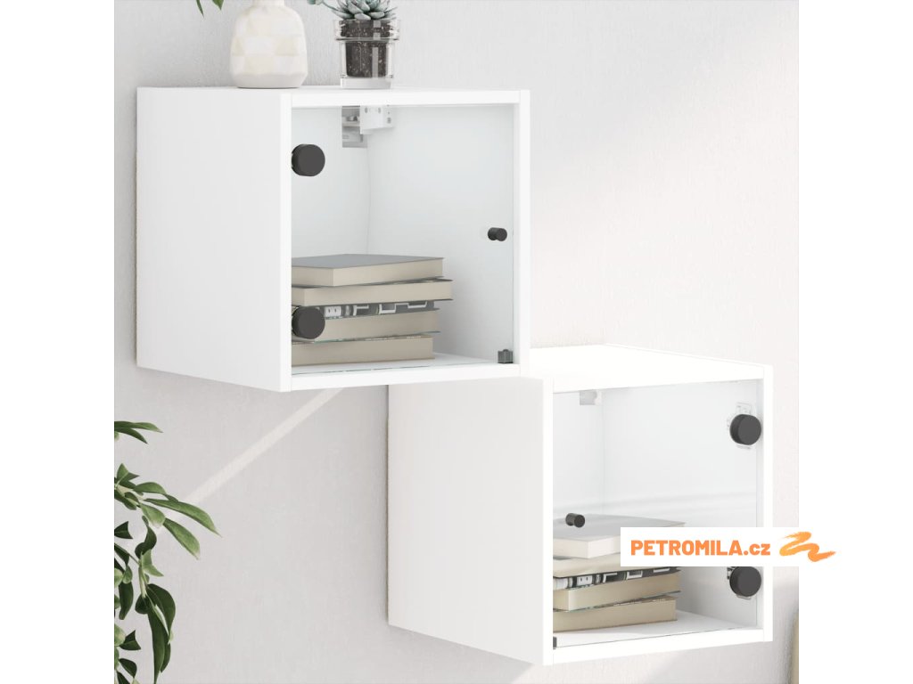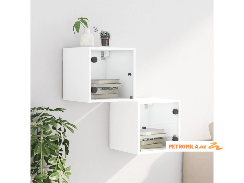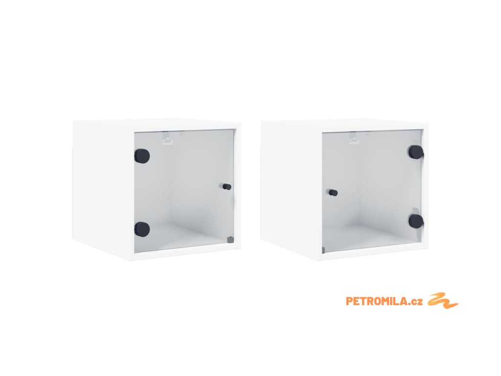 Noční stolky se skleněnými dvířky 2 ks bílé 35 x 37 x 35 cm