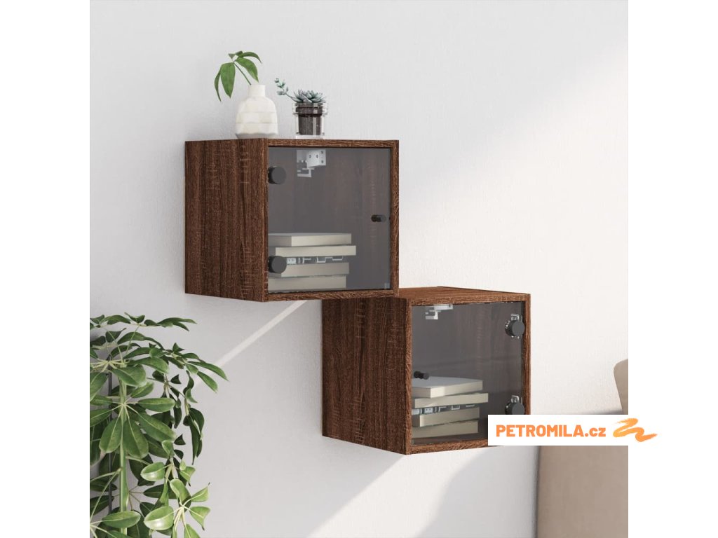 Noční stolky se skleněnými dvířky 2 ks hnědý dub 35x37x35 cm