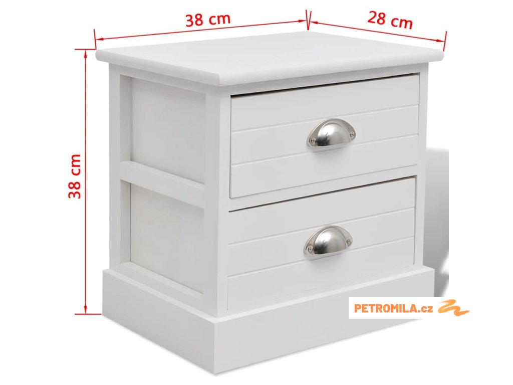 Tyto klasické noční stolky ve francouzském venkovském stylu vnesou do vaší ložnice, obývacího pokoje nebo salonku rustikální půvab. Stolky mohou být používány také jako telefonní stolky, odkládací stolky, úložné skříňky, komody, noční stolky, stolky ke gauči apod.