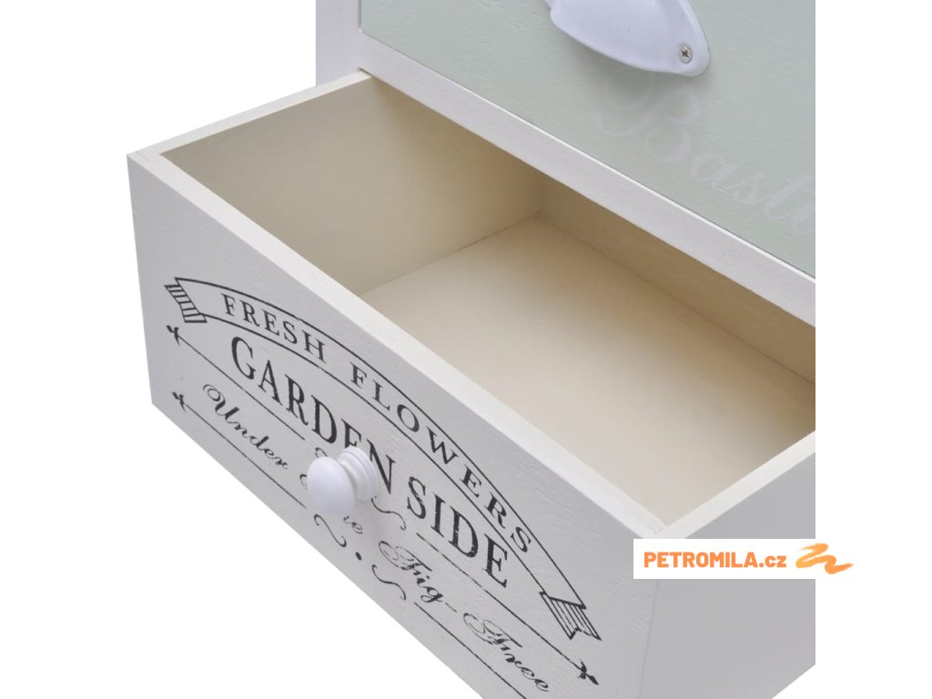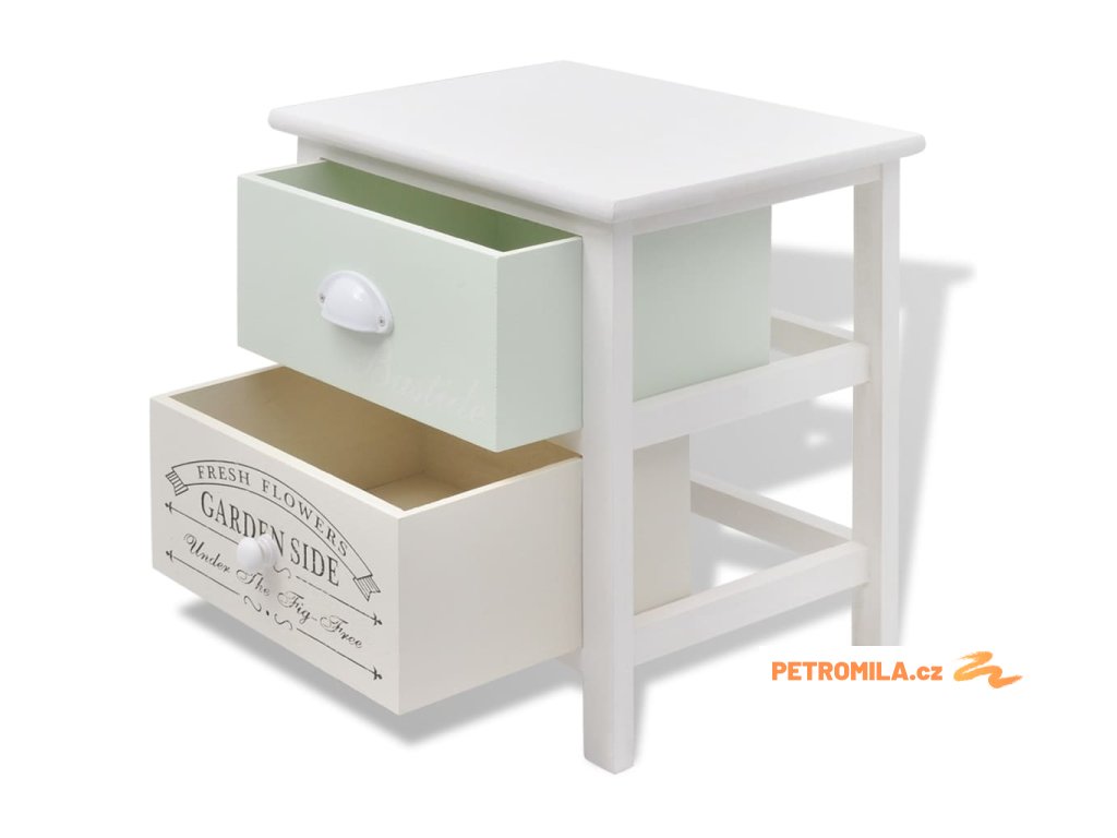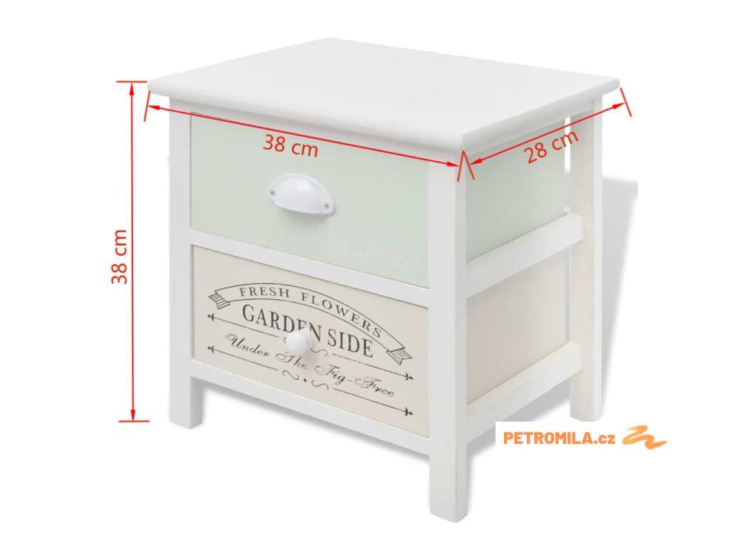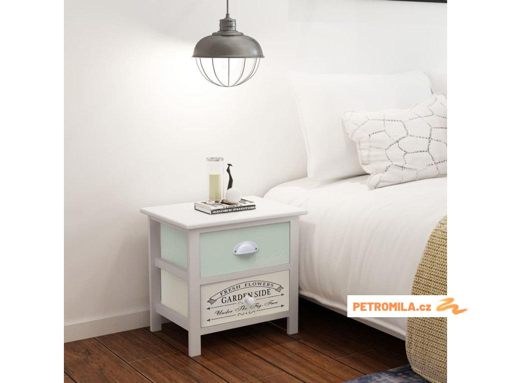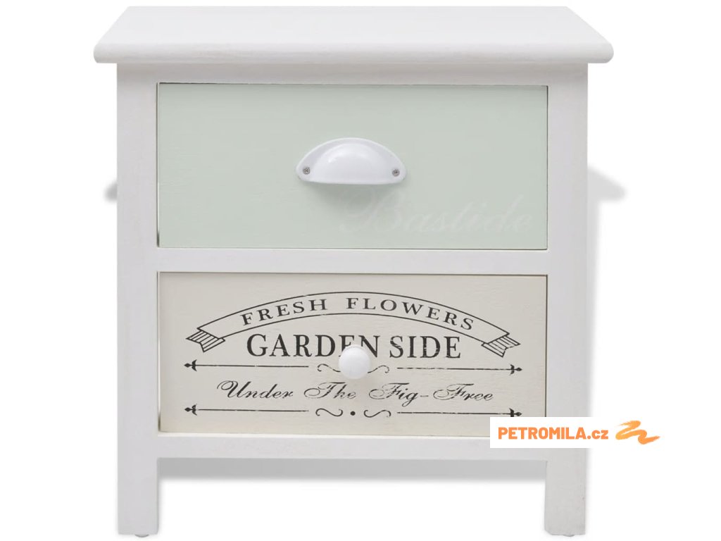 Tyto kompaktní noční stolky mají 2 hladce vysouvatelné šuplíky, které poskytují dostatek místa na vaše drobnosti, abyste je měli uspořádané a po ruce. Zásuvky s potisky ve vintage venkovském stylu dodávají stolkům rustikální ráz. Šuplíky se dají mezi sebou vyměňovat. Protože jsou vyrobené z vysoce kvalitních materiálů, jsou tyto stolky odolné a snadno se čistí.