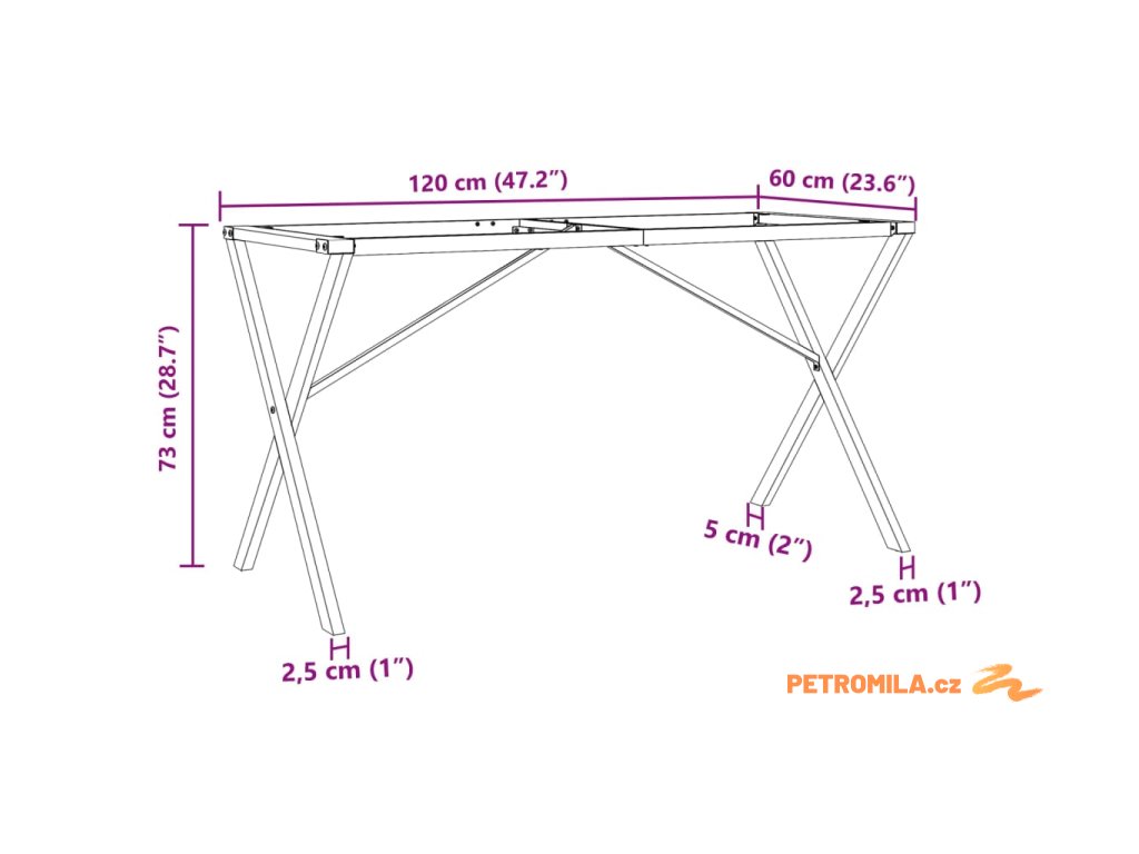 Nohy k jídelnímu stolu X rám 120 x 60 x 73 cm ocel