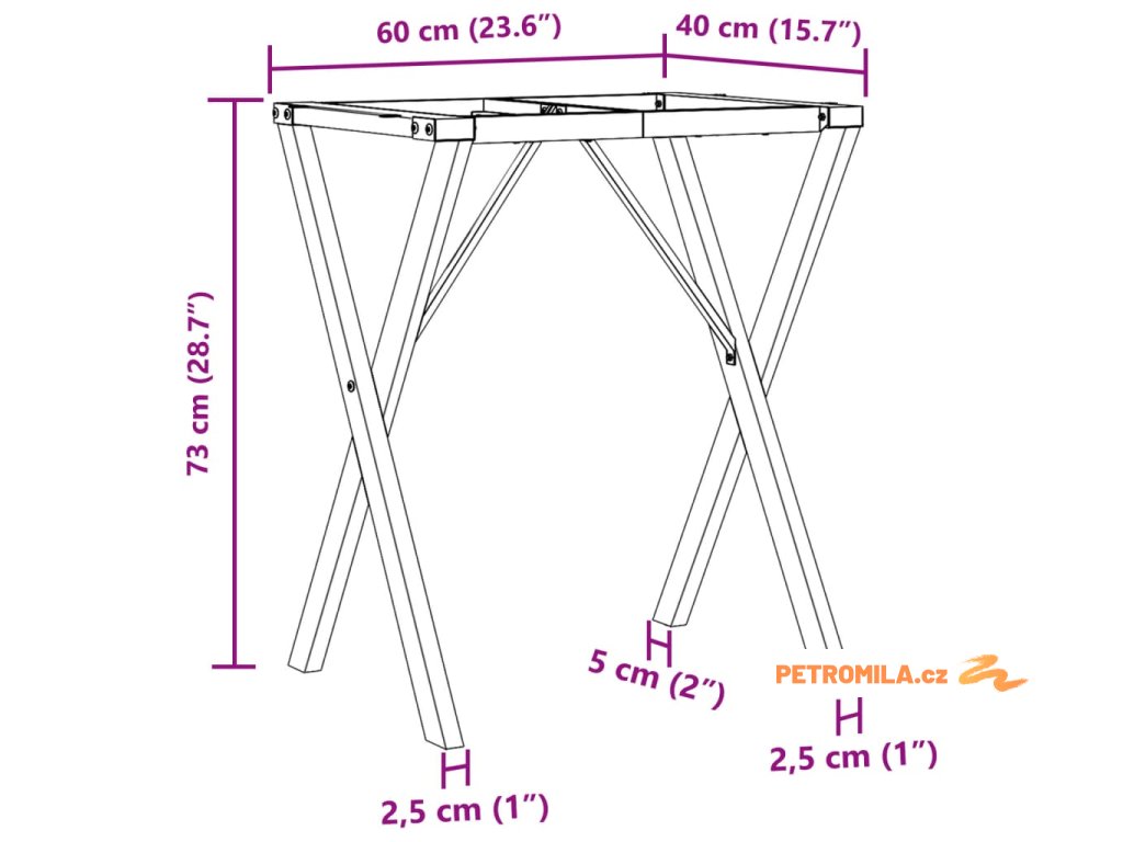 Nohy k jídelnímu stolu X rám 60 x 40 x 73 cm ocel