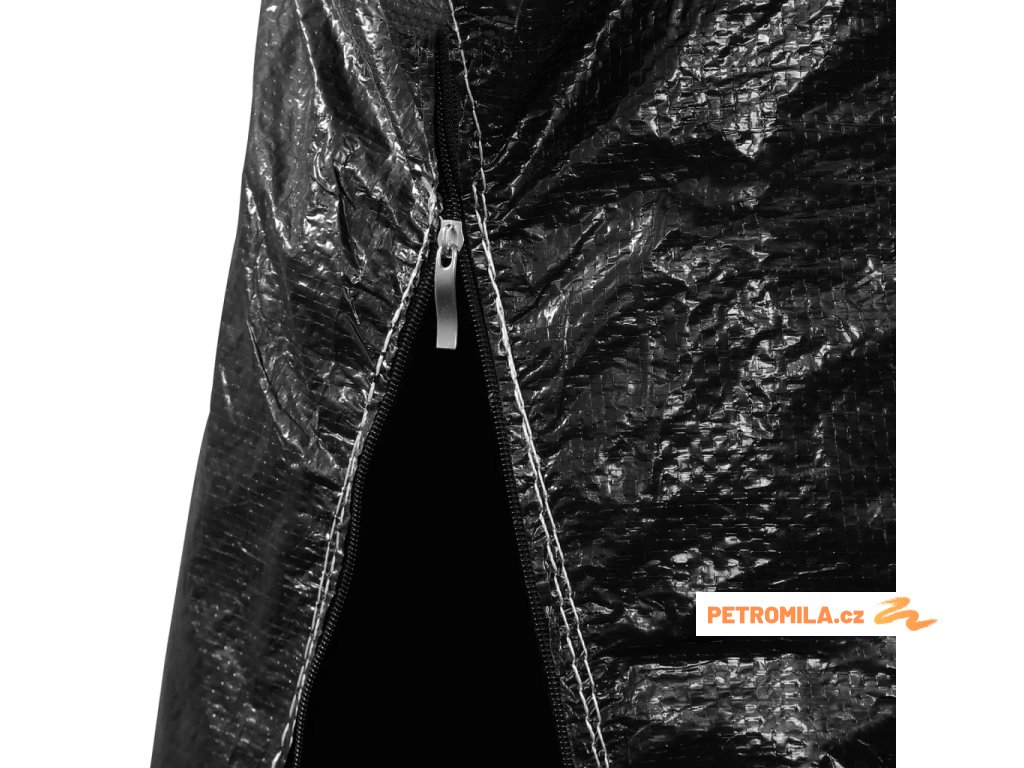 Obal je vyrobený z polyethylenu, který je odolný vůči vodě a UV záření a také proti roztržení, výborně tedy snáší nepřízeň počasí. Pomáhá chránit vzhled a konstrukci slunečníku, a tím prodlužuje jeho životnost. Zip usnadňuje nasazení obalu na slunečník a stahovací šňůrky slouží k utažení obalu a jako prevence odfouknutí v silném větru.