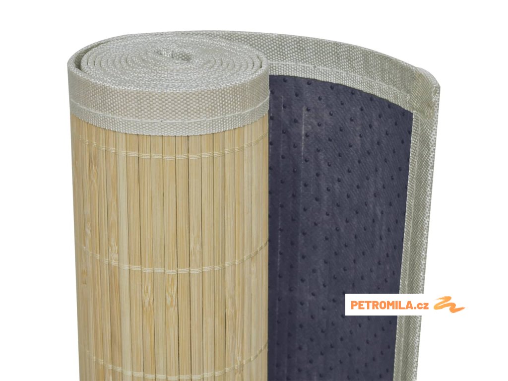 Spodní strana bambusového koberce je podložená neklouzavou vrstvou z PVC, která poskytuje nejen vynikající tlumení, ale navíc udržuje koberec na místě. Polypropylenové okraje dodávají bambusové rohoži pečlivě dokončený vzhled. Koberec je vyrobený z přírodního pevného bambusu a snadno se čistí.