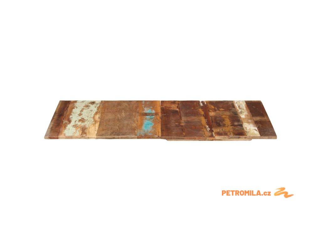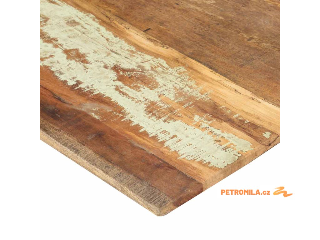 Náhradní stolní deska je vyrobená z masivního tropického recyklovaného dřeva, které pochází ze starých konstrukcí, jako jsou sklady, stodoly, přístřešky, mlýny a domy. Recyklované dřevo má vlastnosti celé řady různých druhů dřevin, jako je mangovník, tvrdé dřevo, teak apod. Známky opotřebení a zřetelná kresba dřeva zase vypovídají o bohaté historii a každému kusu dodávají autentický vzhled. Každá fáze výrobního procesu se provádí s největší péčí, ať už se jedná o leštění, natírání nebo lakování. Masivní dřevěnou desku můžete používat pro konferenční stolky, odkládací stoly, barové stoly, telefonní stolky, konzolové stolky, noční stolky, police nebo jako nábytkovou desku. Tuto stolní desku můžete také kombinovat s libovolným stylem noh podle vašich představ. Deska stolu se snadno čistí vlhkým hadříkem.