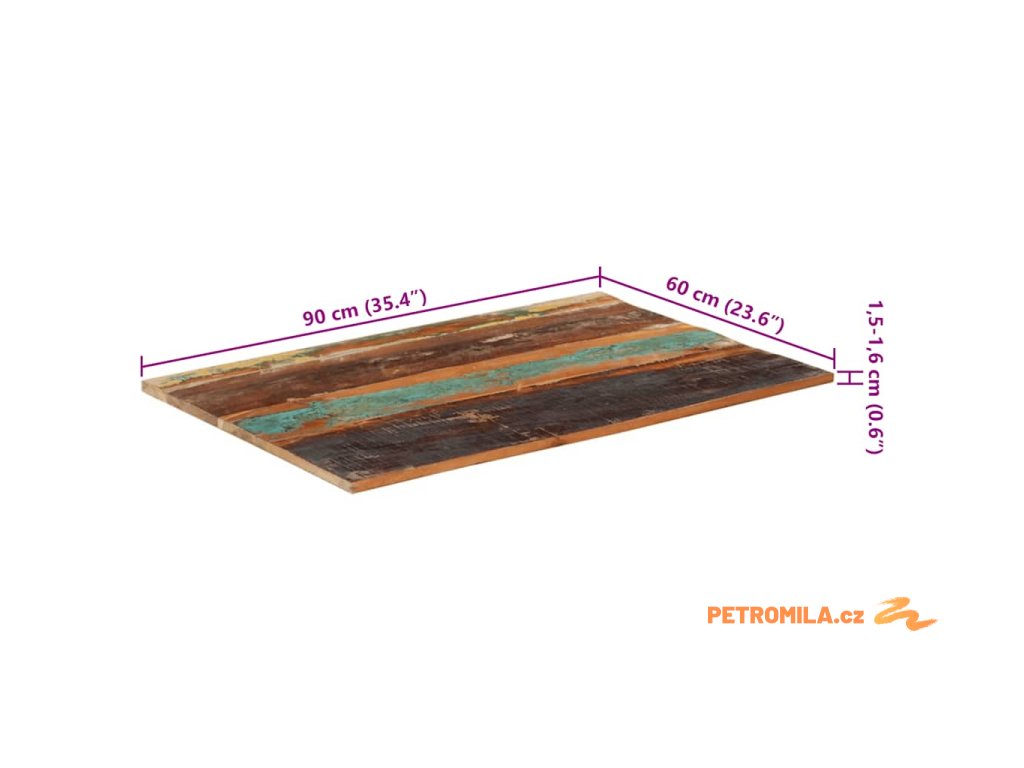 Obdélníková stolní deska 60×90 cm 15–16 mm recyklované dřevo