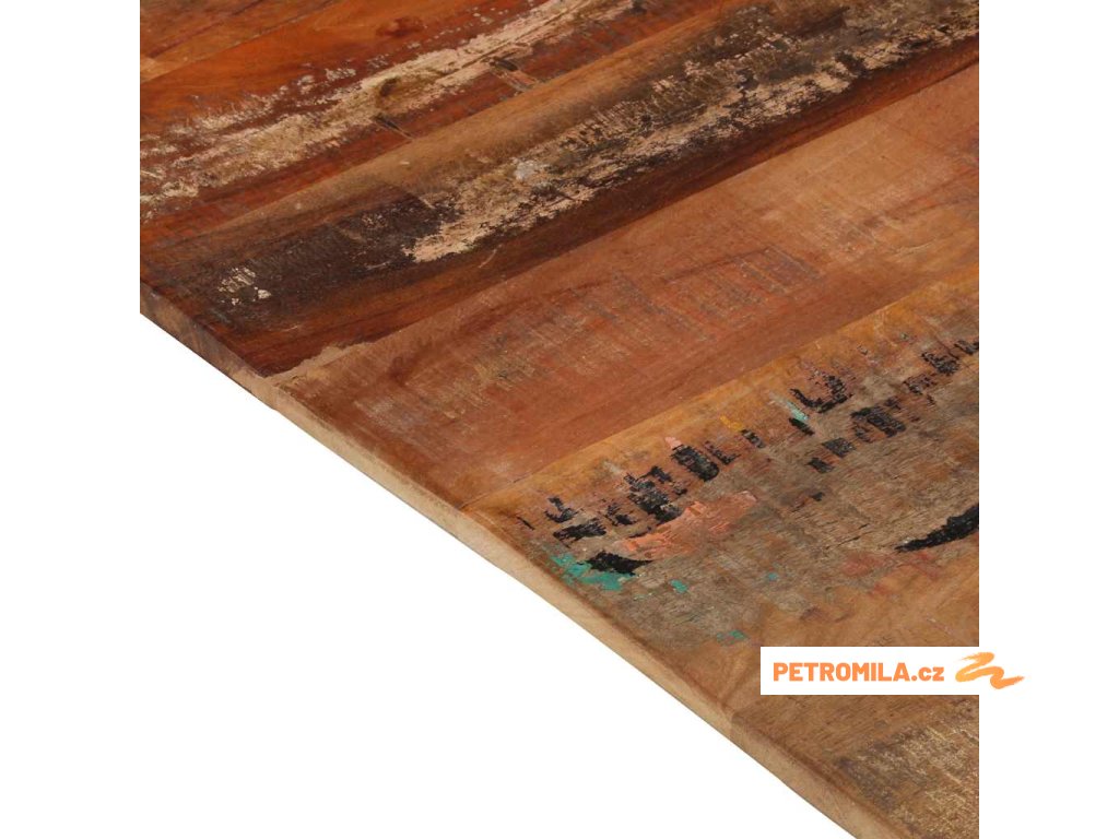 Náhradní stolní deska je vyrobená z masivního tropického recyklovaného dřeva, které pochází ze starých konstrukcí, jako jsou sklady, stodoly, přístřešky, mlýny a domy. Recyklované dřevo má vlastnosti celé řady různých druhů dřevin, jako je mangovník, tvrdé dřevo, teak apod. Známky opotřebení a zřetelná kresba dřeva zase vypovídají o bohaté historii a každému kusu dodávají autentický vzhled. Každá fáze výrobního procesu se provádí s největší péčí, ať už se jedná o leštění, natírání nebo lakování. Masivní dřevěnou desku můžete používat pro konferenční stolky, odkládací stoly, barové stoly, telefonní stolky, konzolové stolky, noční stolky, police nebo jako nábytkovou desku. Tuto stolní desku můžete také kombinovat s libovolným stylem noh podle vašich představ. Deska stolu se snadno čistí vlhkým hadříkem.