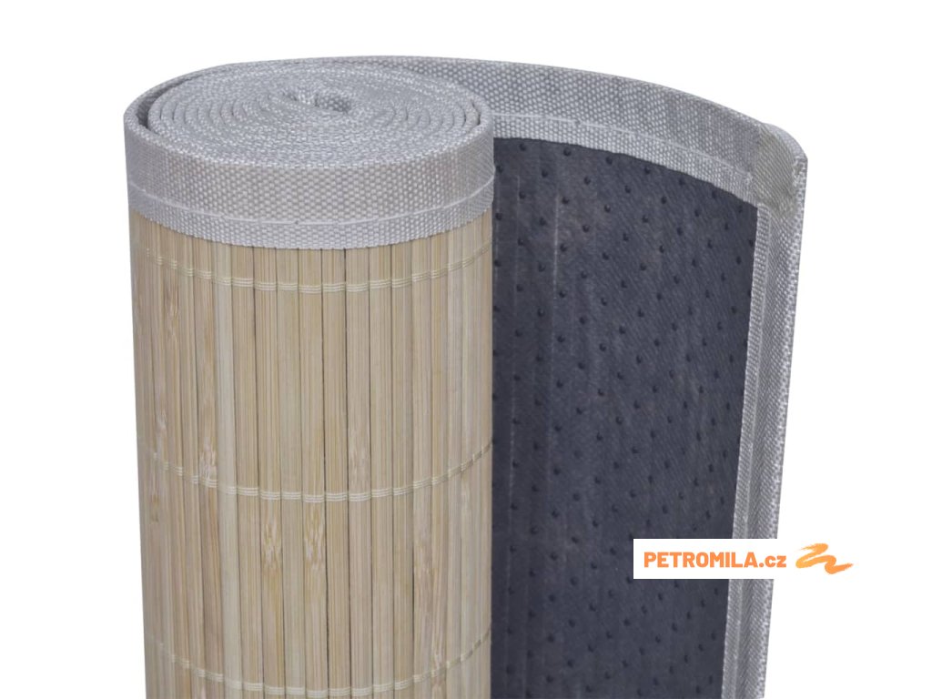 Spodní strana bambusového koberce je podložená neklouzavou vrstvou z PVC, která poskytuje nejen vynikající tlumení, ale navíc udržuje koberec na místě. Polypropylenové okraje dodávají bambusové rohoži pečlivě dokončený vzhled. Koberec je vyrobený z přírodního pevného bambusu a snadno se čistí.