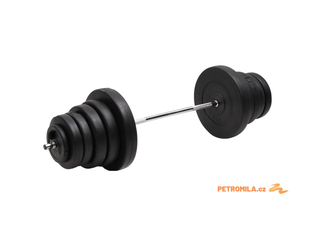 - Odolný materiál: Činka je vyrobena z pochromované oceli a je pevná a stabilní. Závaží je vyrobené z cementu a potažené robustním plastem šetrným k podlaze. Díky tomu nezaznamenáte žádné nepříjemné řinčení závaží.