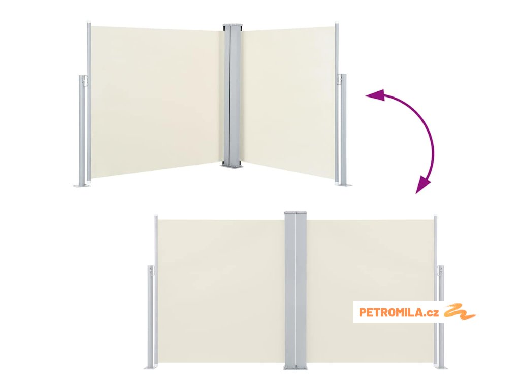 Tato jednoduchá a zároveň stylová oboustranná boční markýza vám pomůže na terase, balkoně nebo dvoře vytvořit útulný koutek v naprostém soukromí. Ochrání vás také před větrem a nízko položeným sluncem.