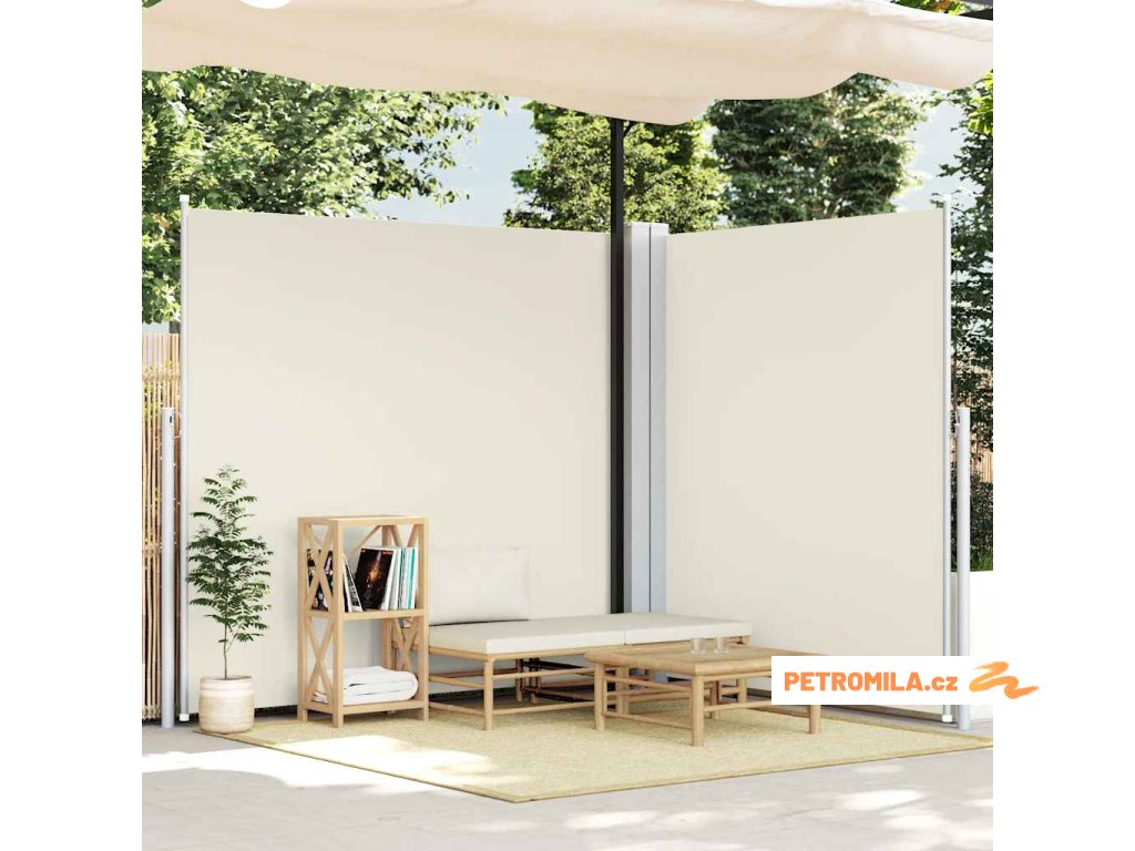 Oboustranná zatahovací boční markýza 170 x 600 cm krémová