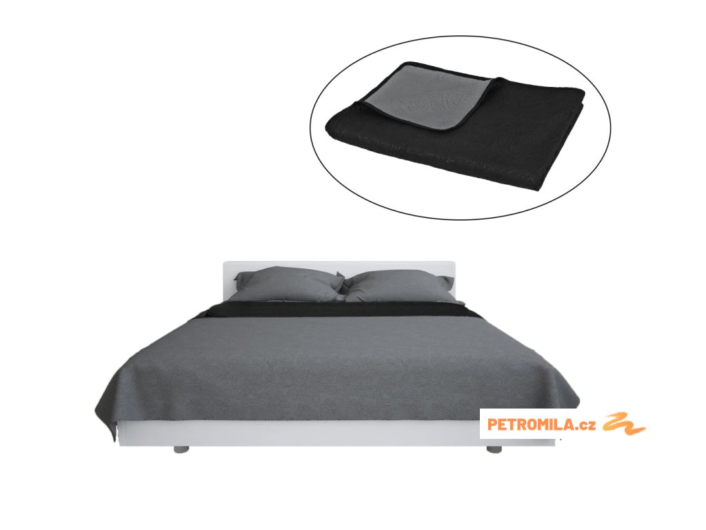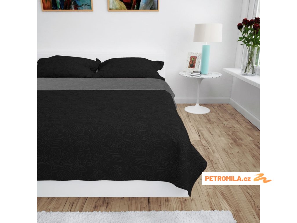 Oboustranný prošívaný přehoz na postel 230 x 260 cm šedo-černý