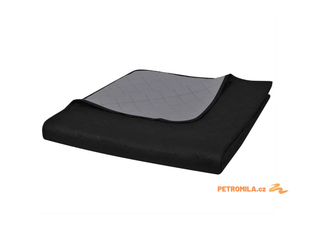 Oboustranný prošívaný přehoz na postel černo-šedý 230 x 260 cm