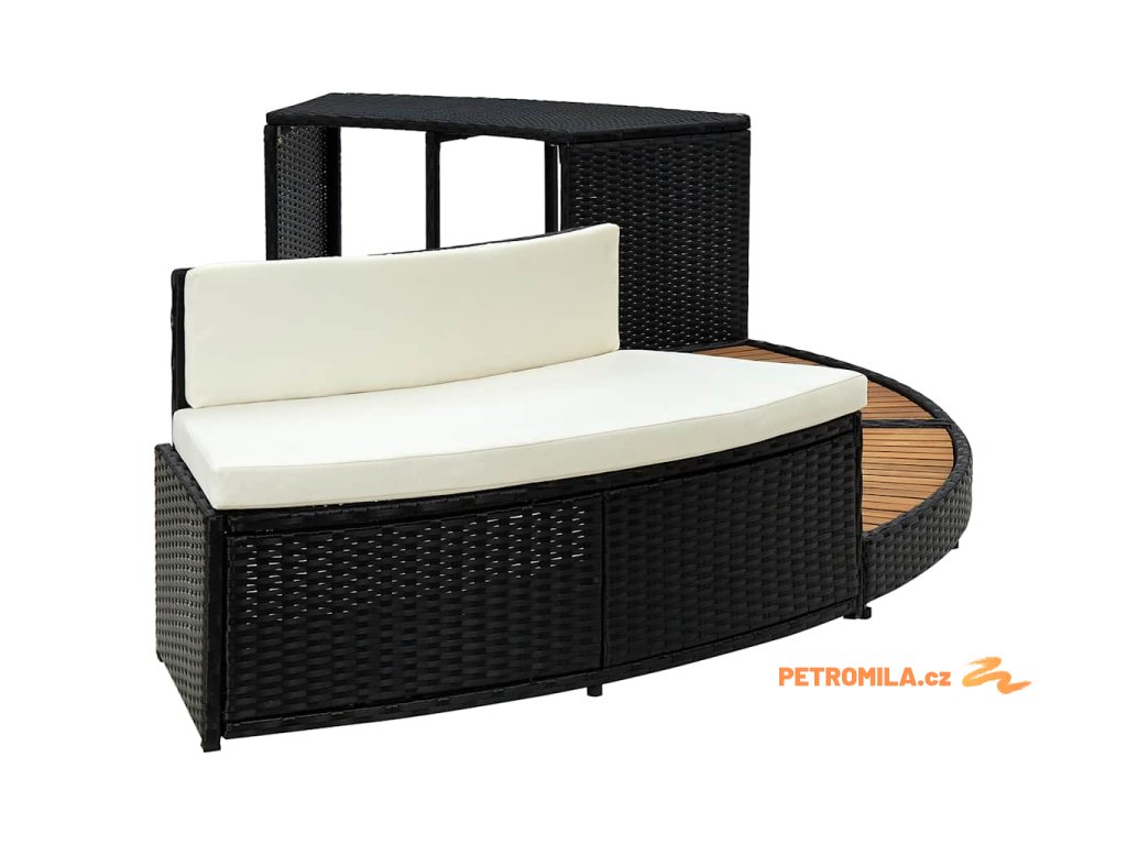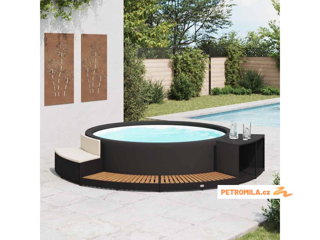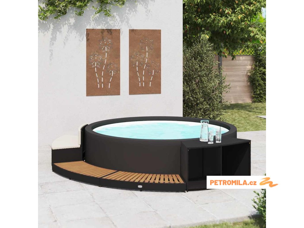 Obruba k vířivce černá polyratan a akáciové dřevo