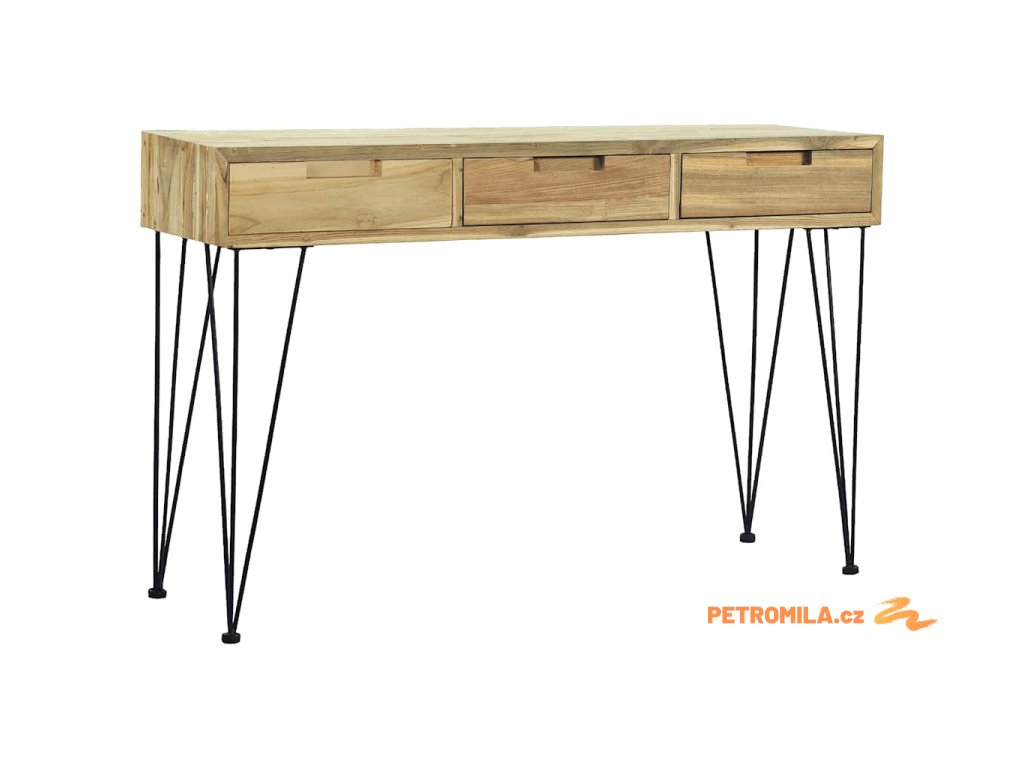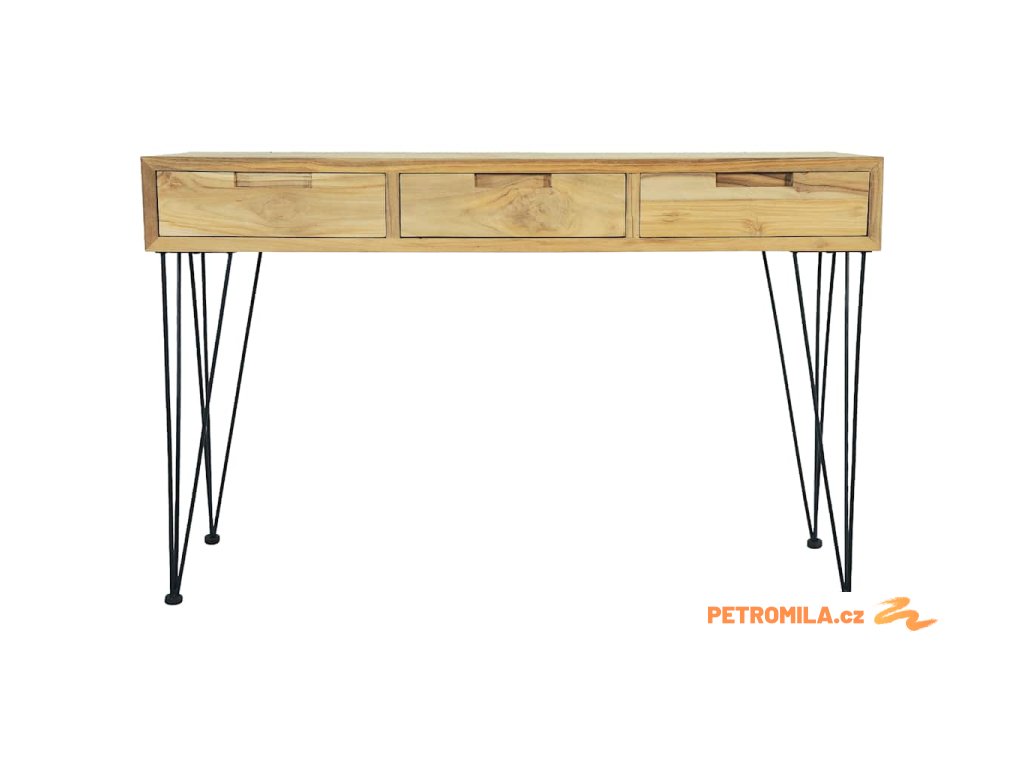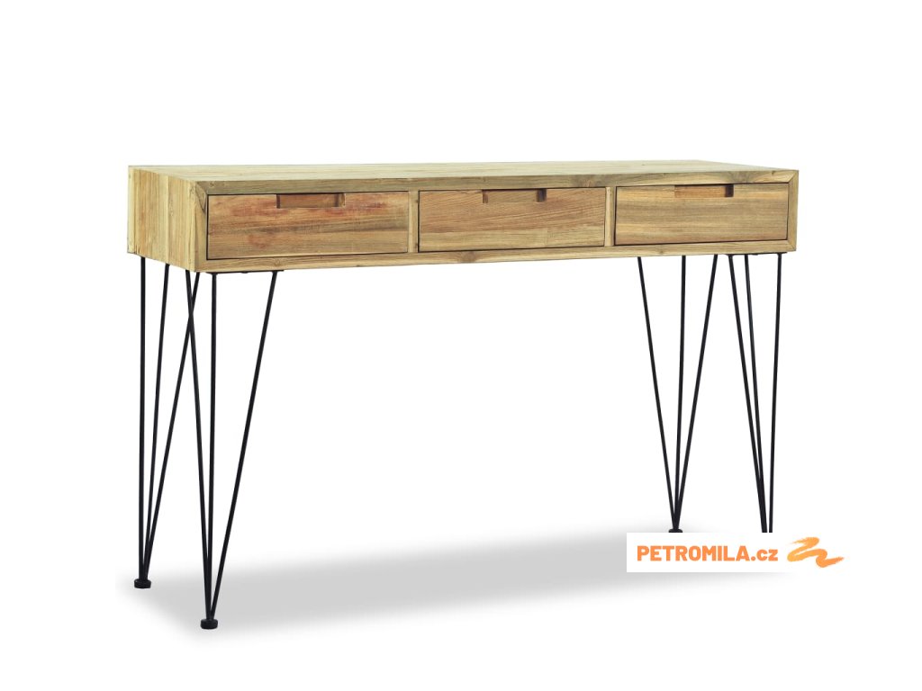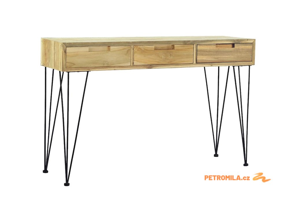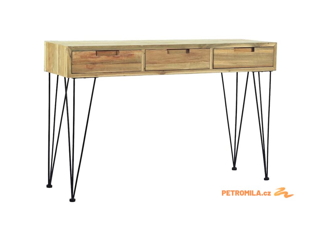 Stolek má pevnou desku z tvrdého dřeva, na kterou můžete vystavit dekorativní předměty, jako jsou mísy s ovocem či vázy. Do 3 zásuvek se pak vejdou veškeré drobnosti, které si chcete uschovat po ruce. Stolek navíc disponuje robustními nožkami z tepaného železa. Jeho montáž je také velmi snadná.