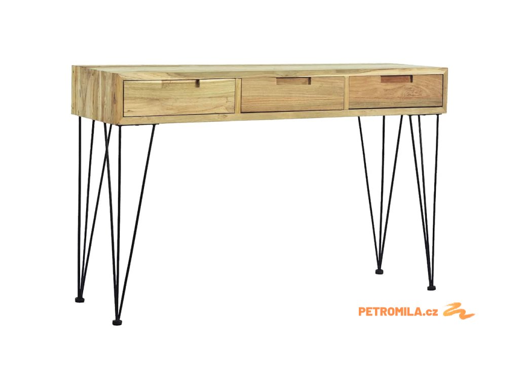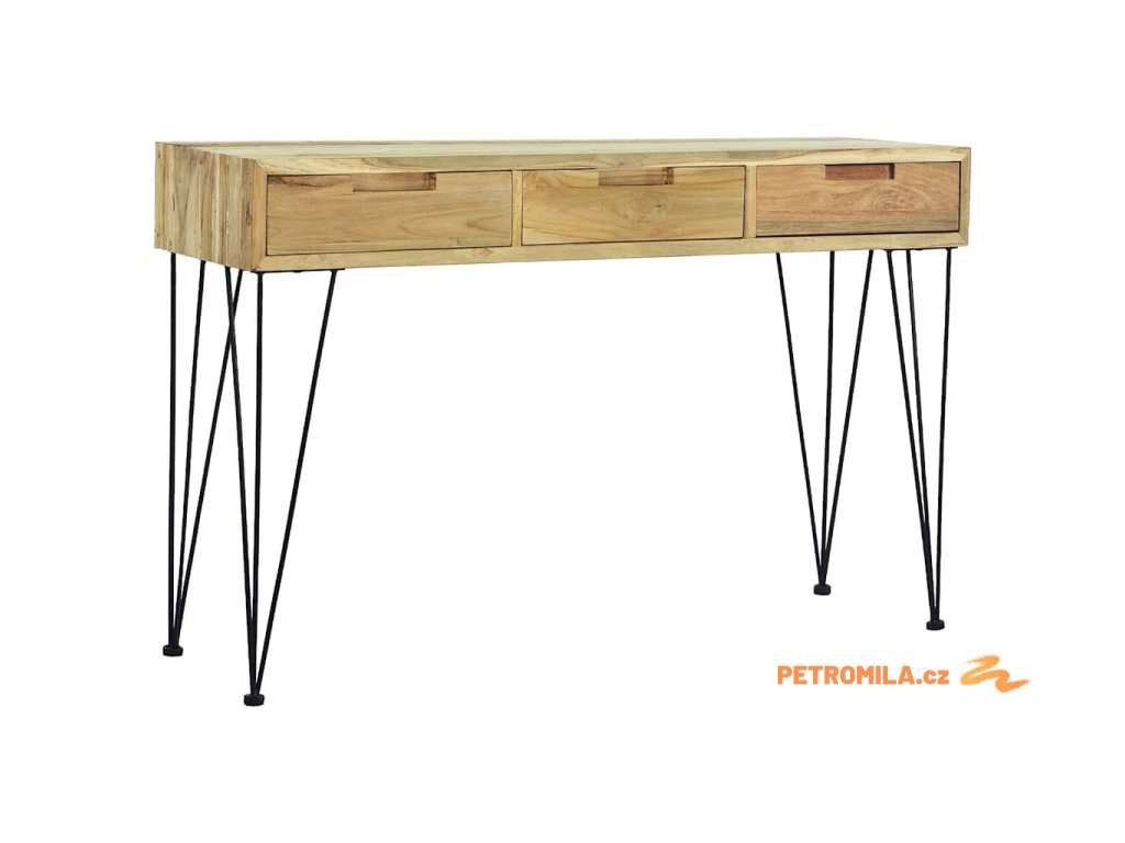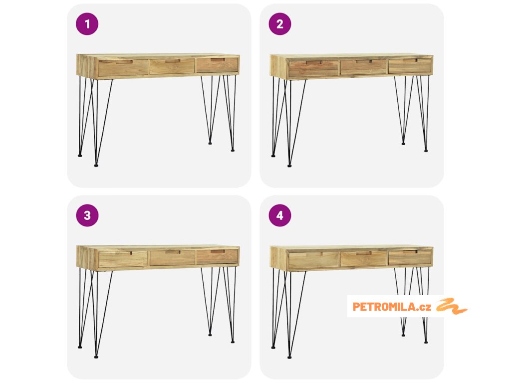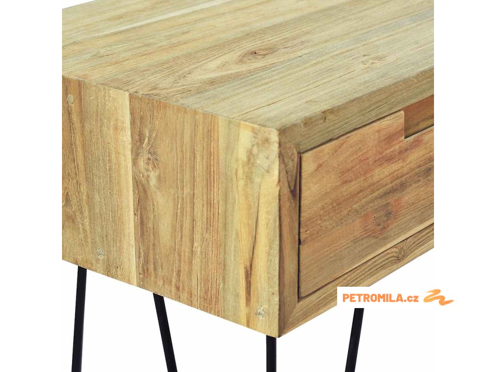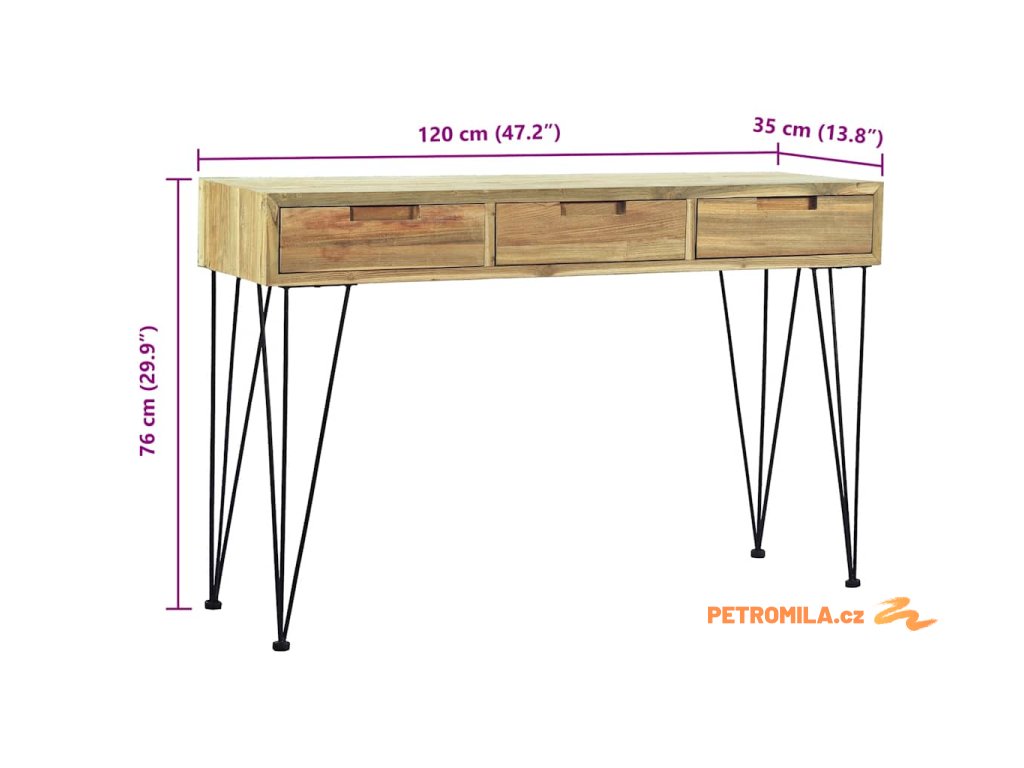 Stolek má pevnou desku z tvrdého dřeva, na kterou můžete vystavit dekorativní předměty, jako jsou mísy s ovocem či vázy. Do 3 zásuvek se pak vejdou veškeré drobnosti, které si chcete uschovat po ruce. Stolek navíc disponuje robustními nožkami z tepaného železa. Jeho montáž je také velmi snadná.