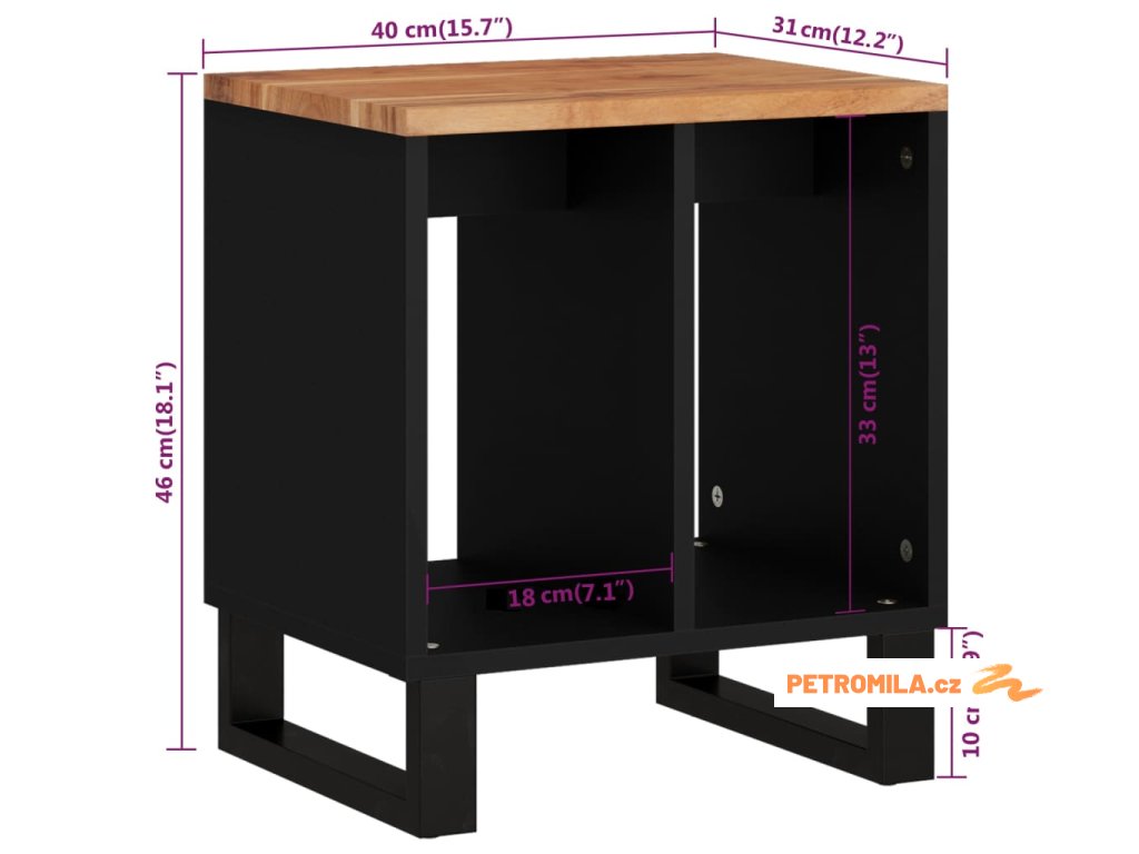 Odkládací stolek 40 x 31 x 46 cm masivní akácie a kompozit
