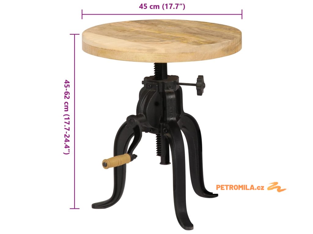 Odkládací stolek 45 x (45–62) cm masivní mangovník a litina