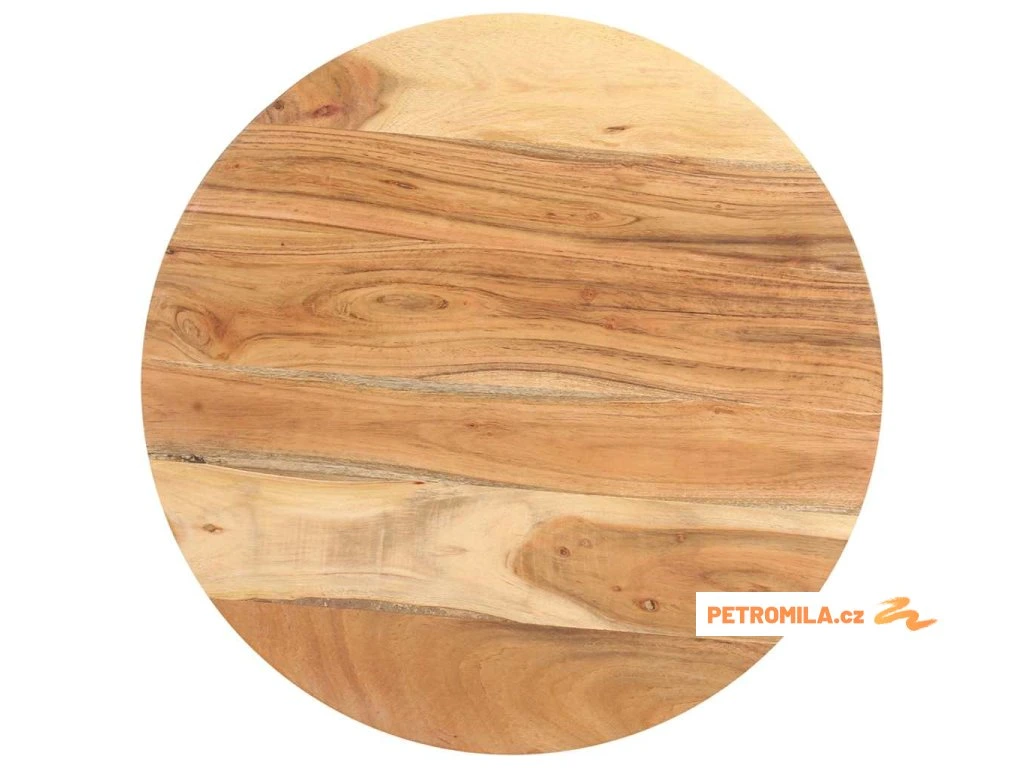 - Materiál: masivní akáciové dřevo s přírodním povrchem, práškově lakované železo
