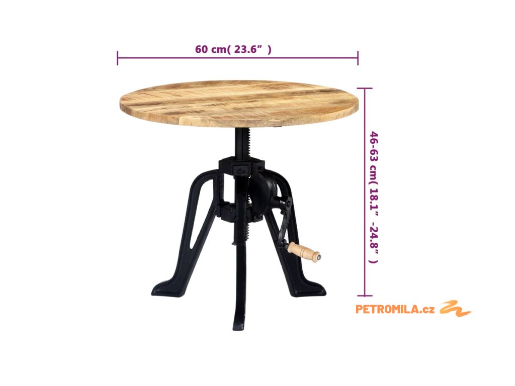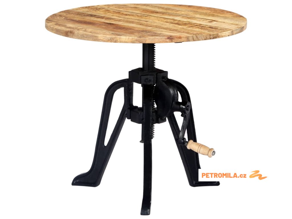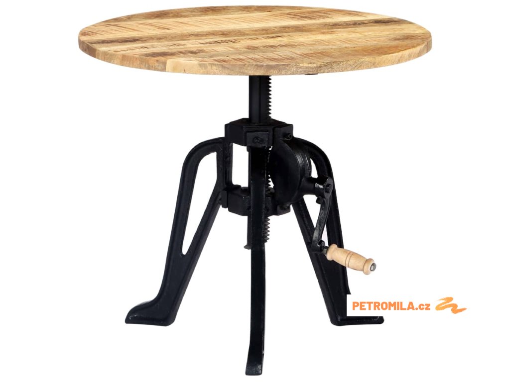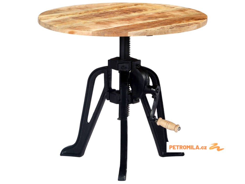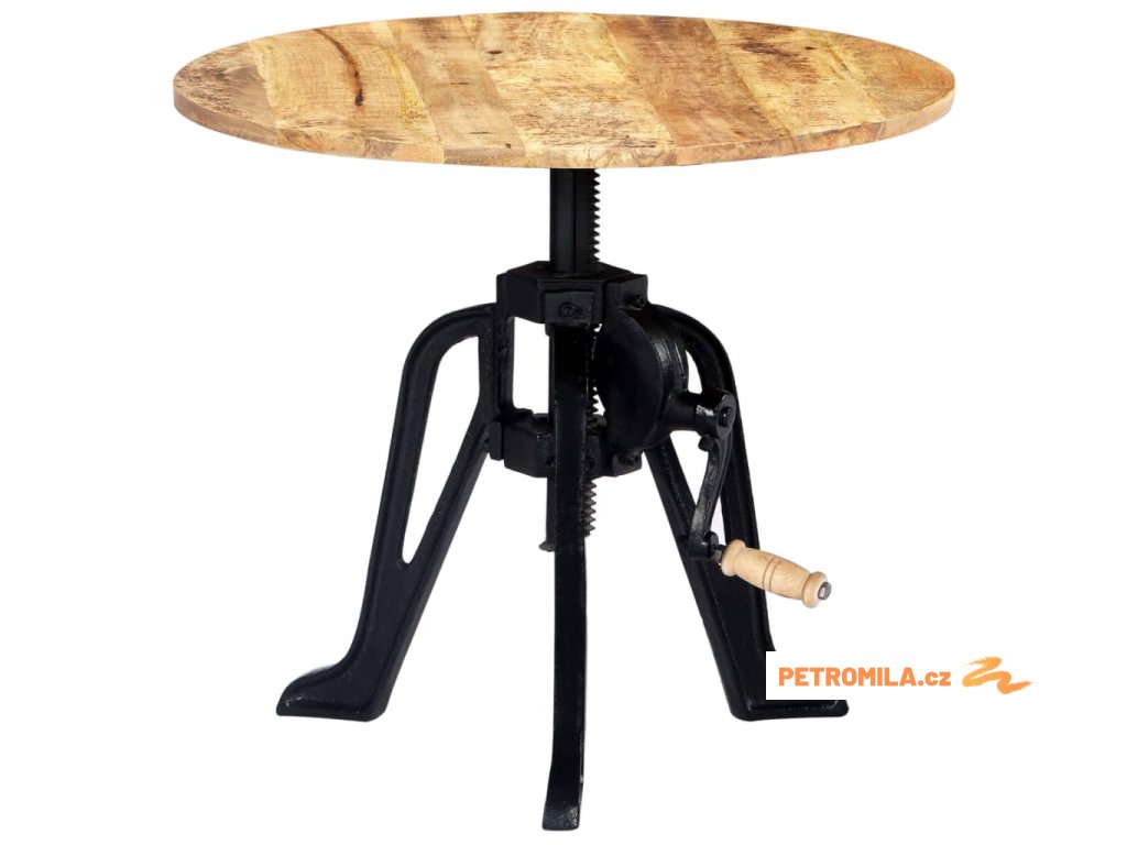 Odkládací stolek je vyroben z masivního mangovníkového dřeva, což zajišťuje jeho vysokou stabilitu a odolnost. Mangovník má husté a robustní tvrdé dřevo, jehož povrch se vyznačuje překrásnou hnědou či zlatou kresbou. Každý krok výrobního procesu je prováděn s mimořádnou péčí, ať už se jedná o leštění, natírání anebo lakování. Litinová základna dodává stolku na pevnosti a prodlužuje jeho životnost. Výšku dřevěného stolku lze nastavit v rozmezí 46 až 63 cm, takže ho můžete využívat k různým účelům.