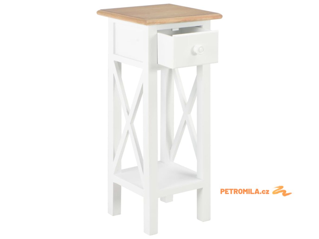 Odkládací stolek bílý 27 x 27 x 65,5 cm dřevo