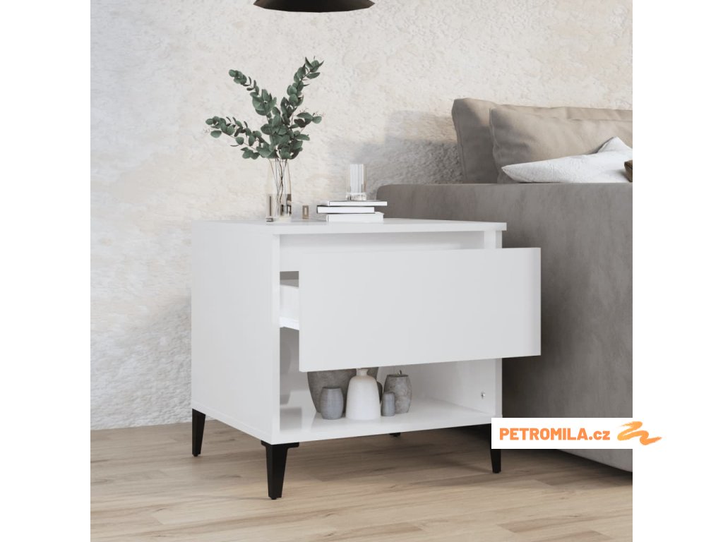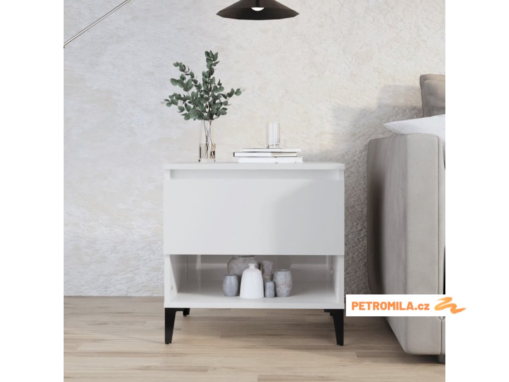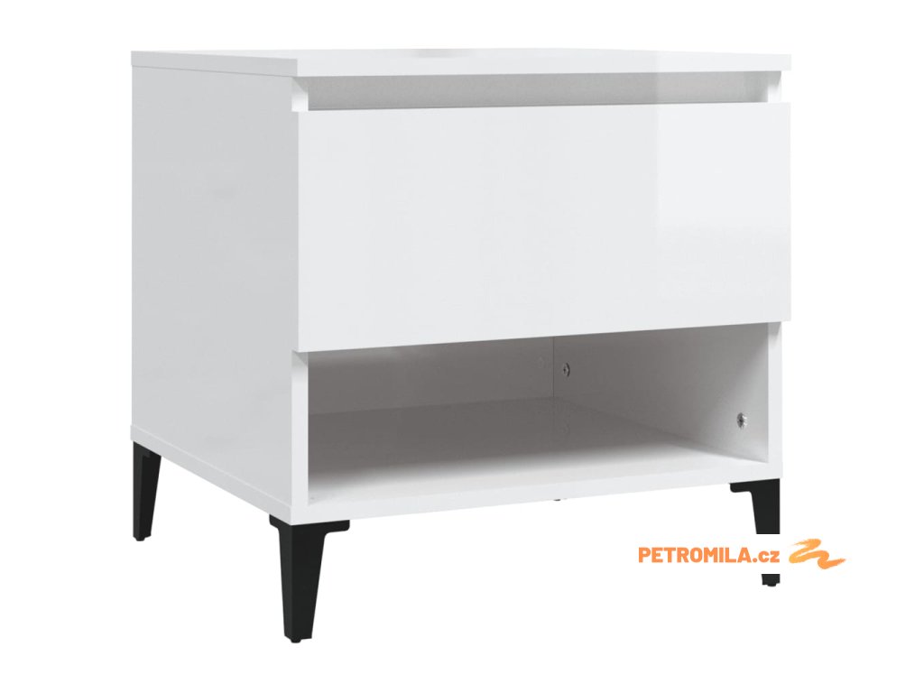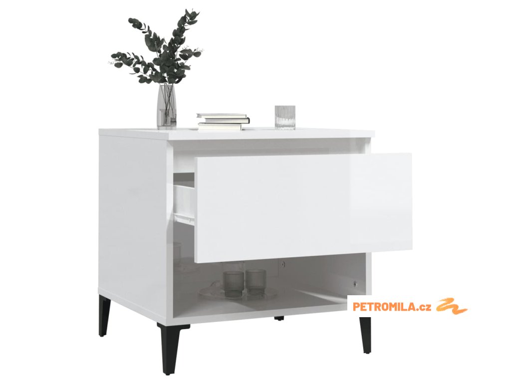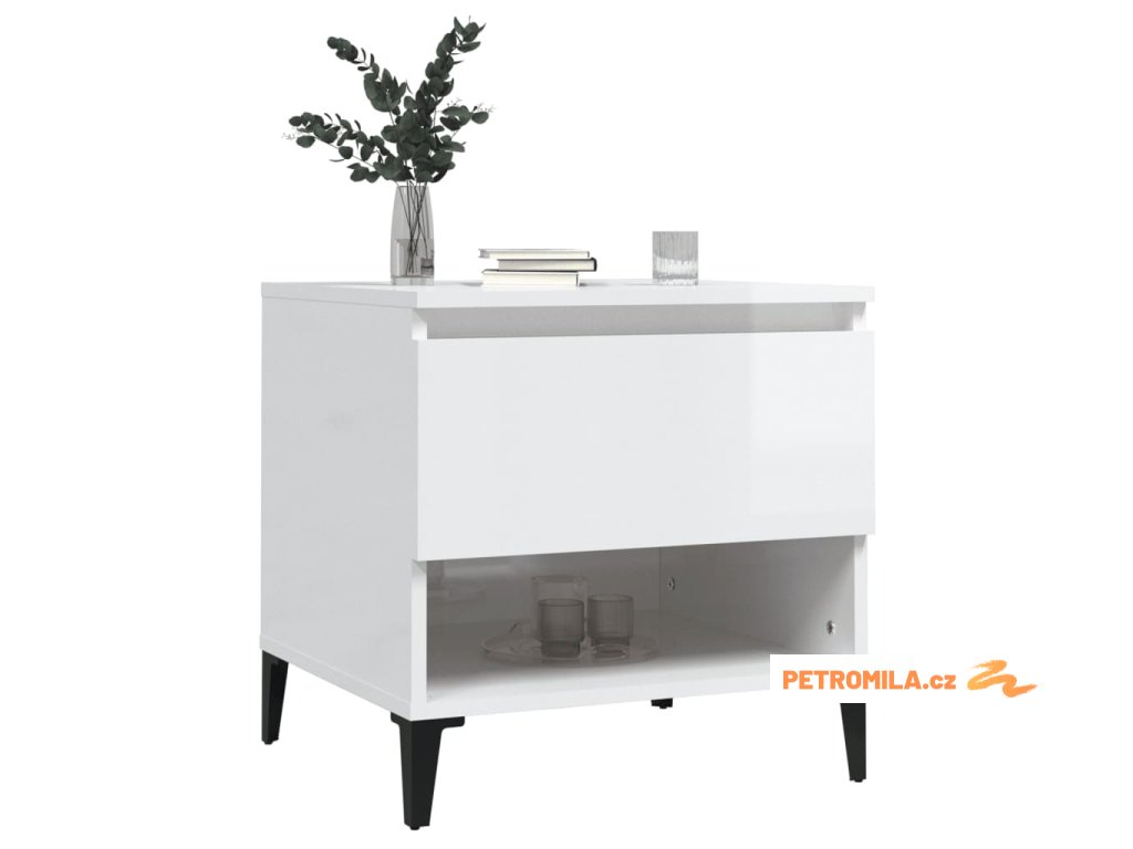 Odkládací stolek bílý vysoký lesk 50x46x50 cm kompozitní dřevo