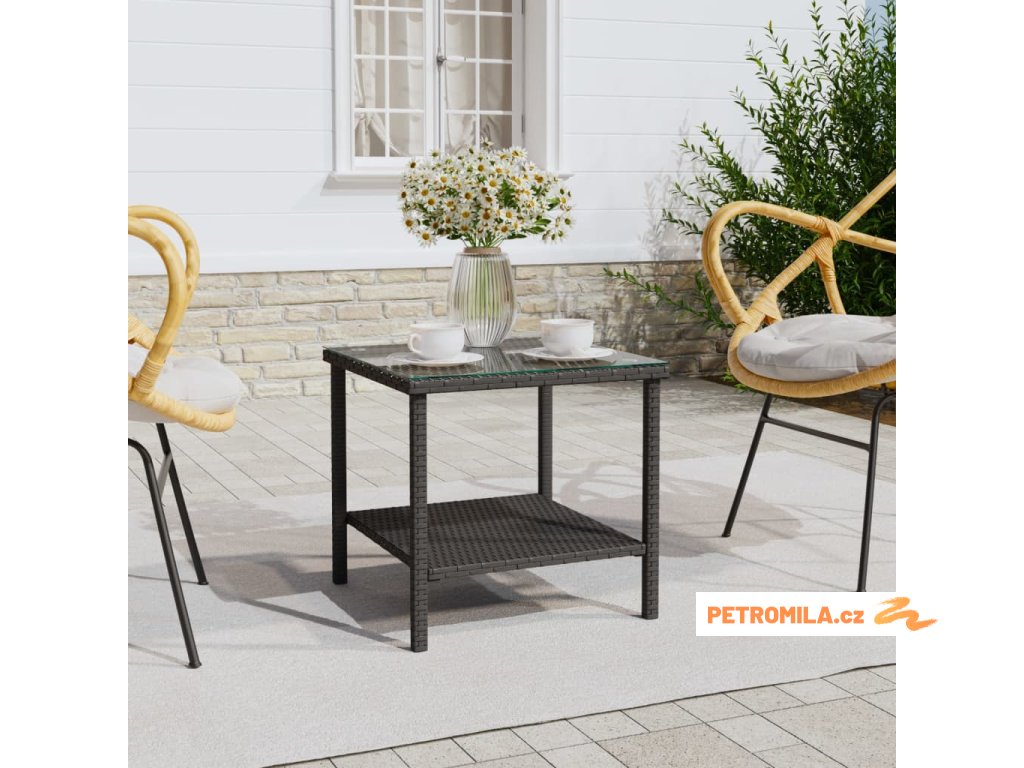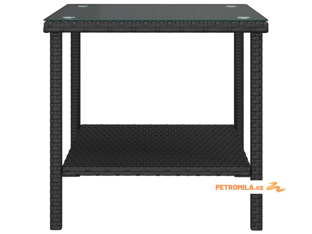 Odkládací stolek černý 45 x 45 x 45 polyratan a tvrzené sklo