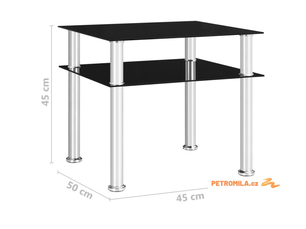 Odkládací stolek černý 45 x 50 x 45 cm tvrzené sklo