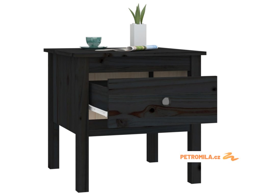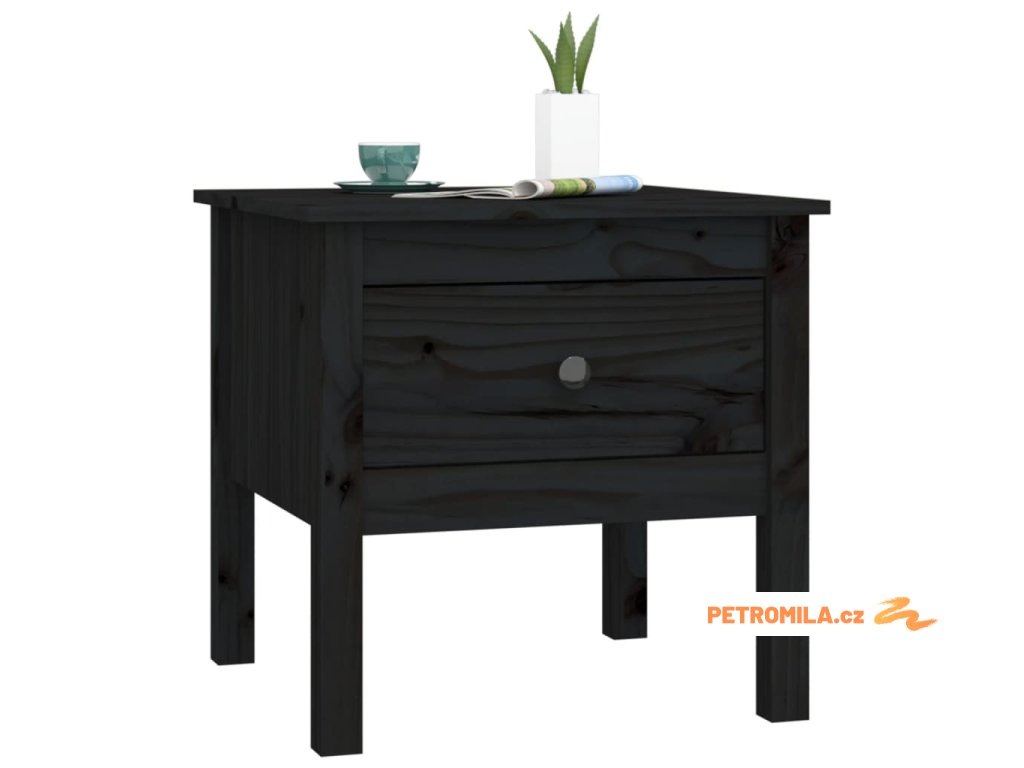 Odkládací stolek černý 50 x 50 x 49 cm masivní borovice