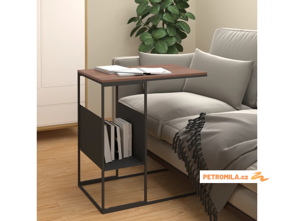 Konferenční stolek tmavě hnědý a černý 90x45x40 cm MDF a železo