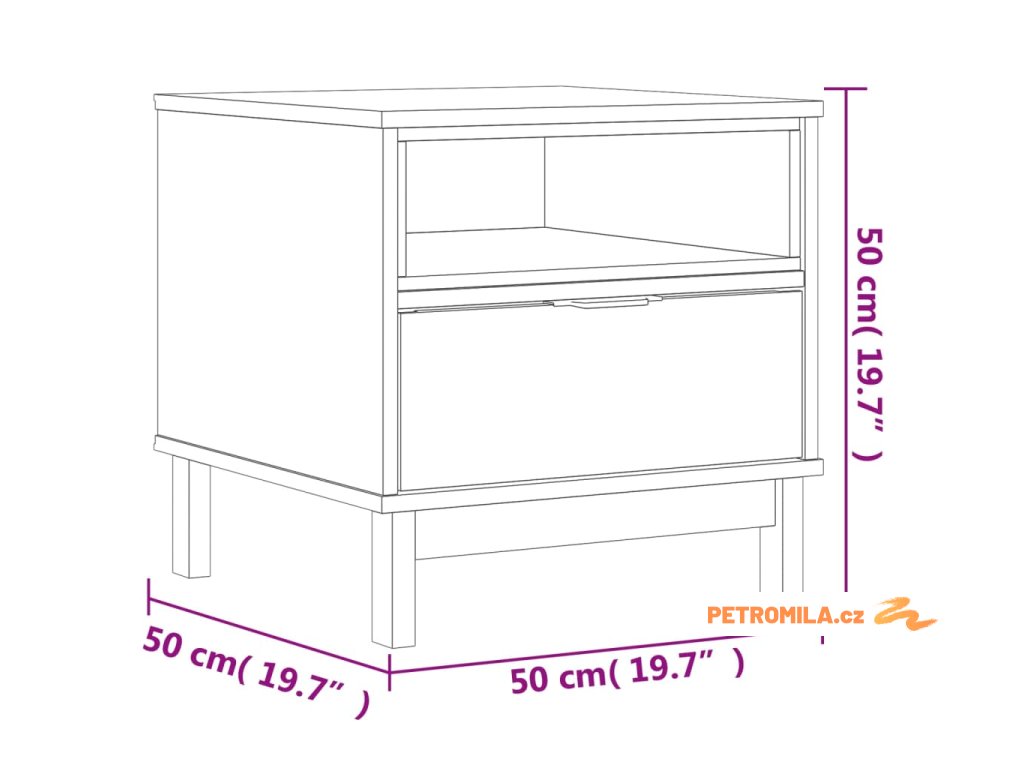 Odkládací stolek FLAM 50 x 50 x 50 cm masivní borové dřevo