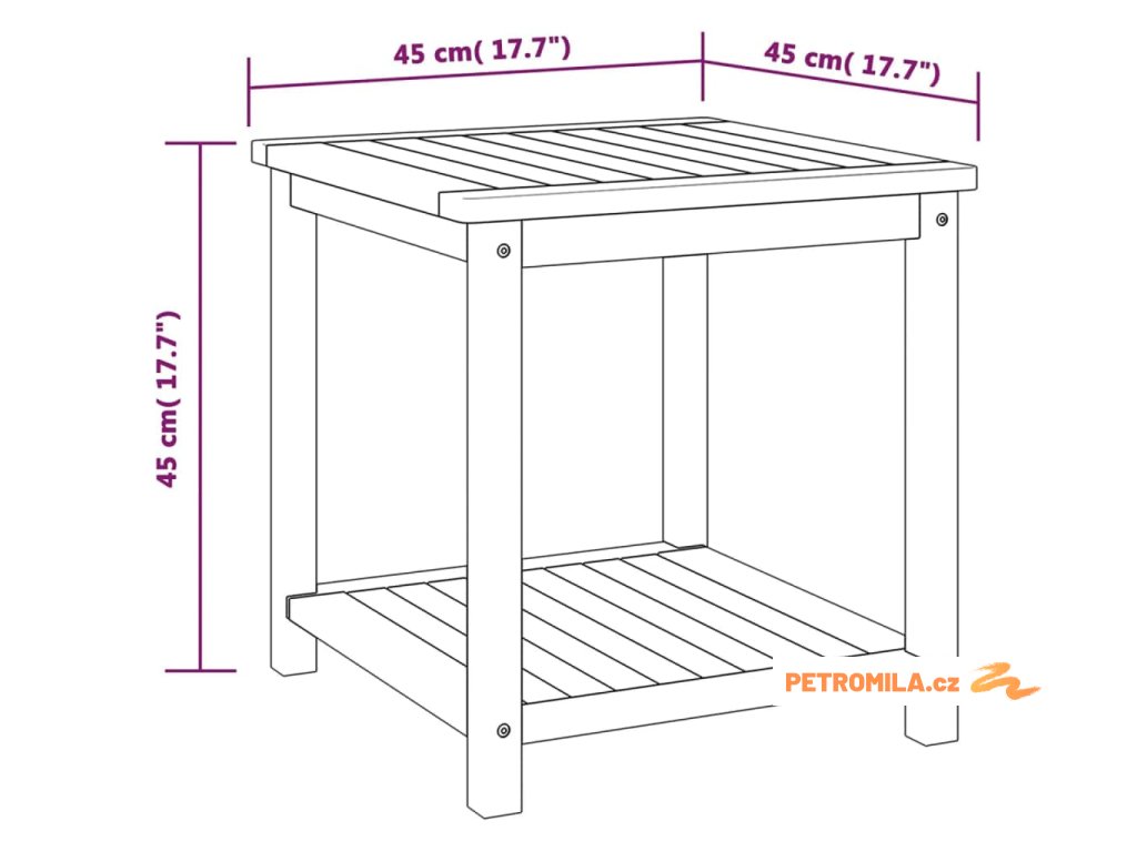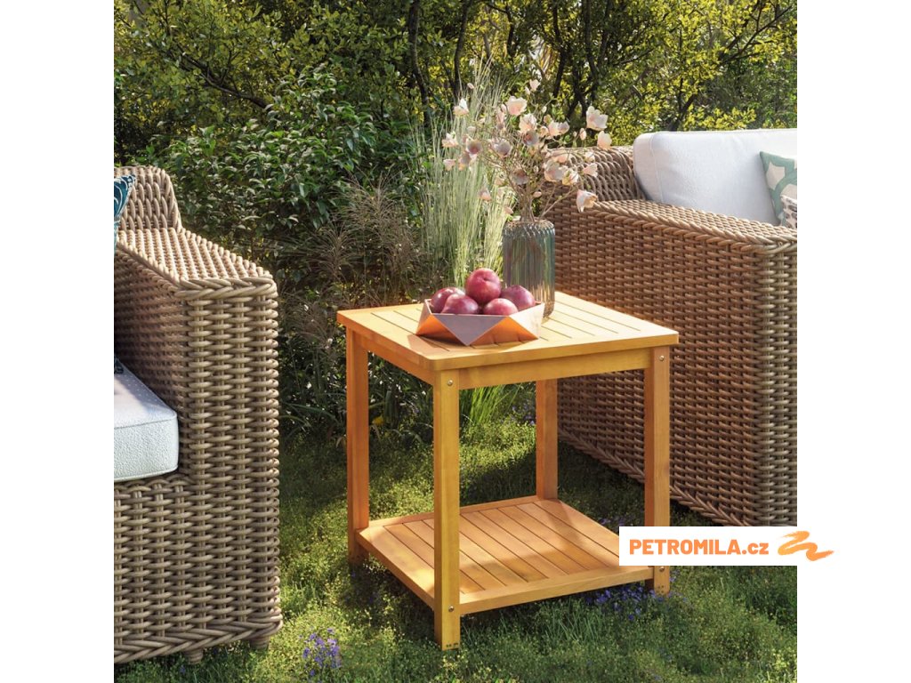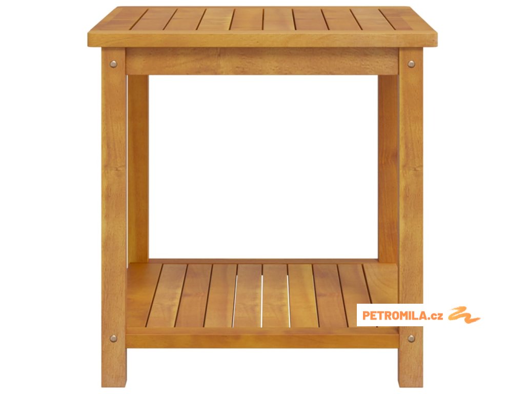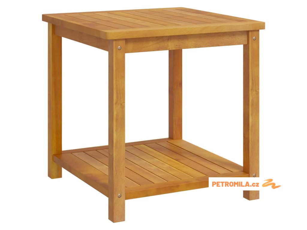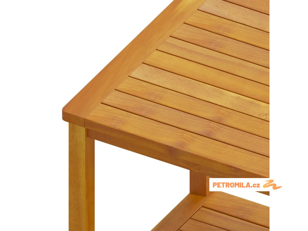 Stolek je vyroben z masivního akáciového dřeva a je odolný vůči povětrnostním vlivům a velmi bytelný. Pevná horní deska i spodní polička vám poskytnou spoustu místa pro umístění nejrůznějších předmětů. Montáž je snadná.