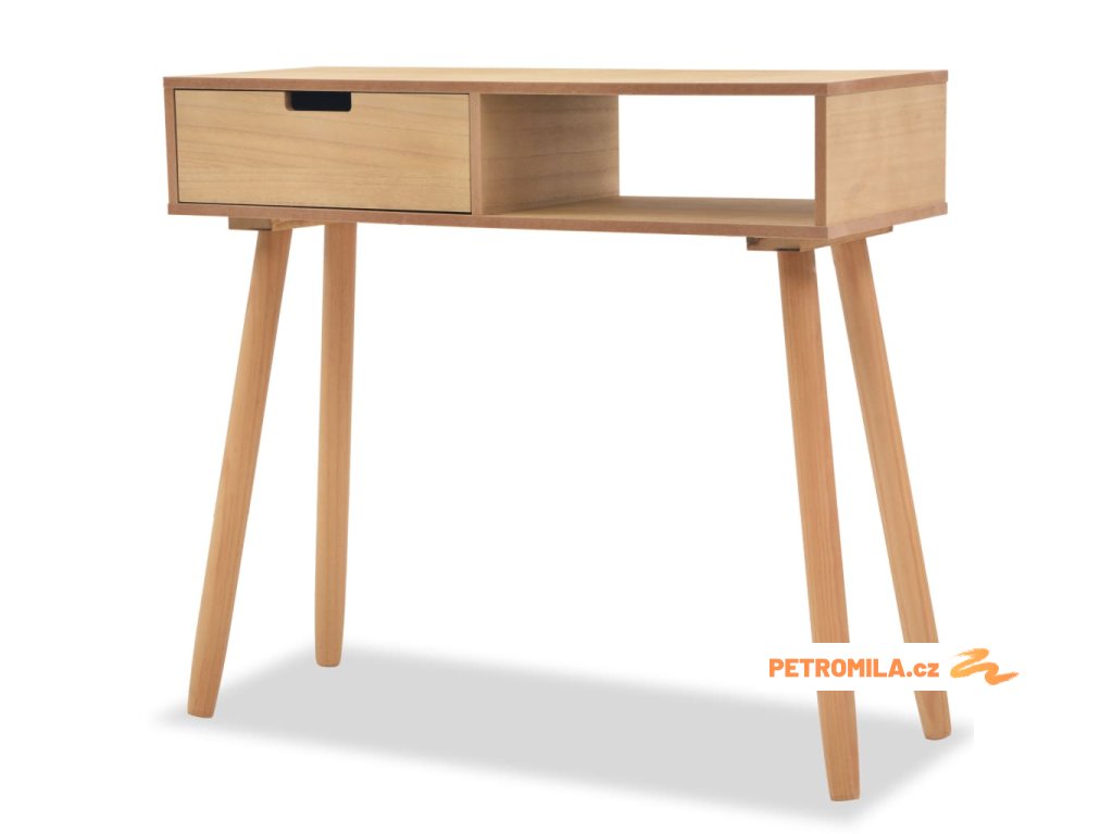 Stolek byl ručně vyrobený z masivního borového dřeva, které je pevné a velmi odolné. Má kompaktní rozměry, a tak ho lze umístit téměř kamkoliv. Na odolnou desku z MDF si můžete vystavit okrasné předměty, fotky nebo hrnkové rostliny a do zásuvky ukládat nejrůznější drobnosti. Stolek můžete uplatnit jako stolek na telefon, odkládací stolek, koncový stolek nebo malý příborník. Jeho sestavení je snadné.