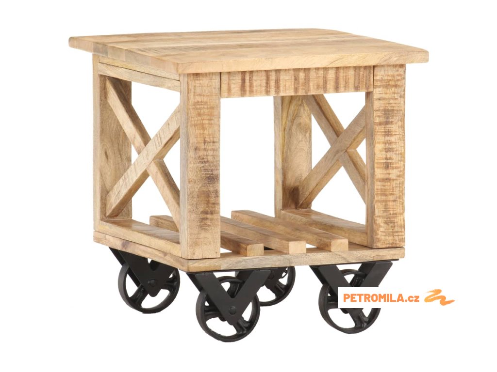 Odkládací stolek s kolečky 40 x 40 x 42 cm hrubý mangovník