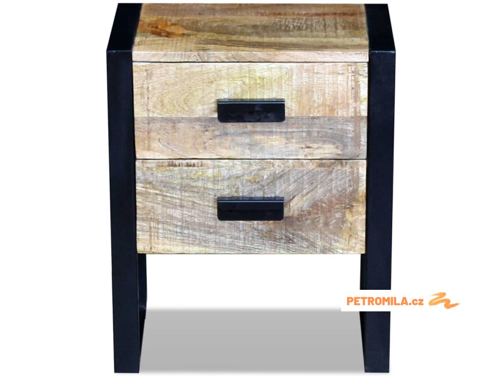 Odkládací stolek se 2 zásuvkami, masivní mangovníkové dřevo