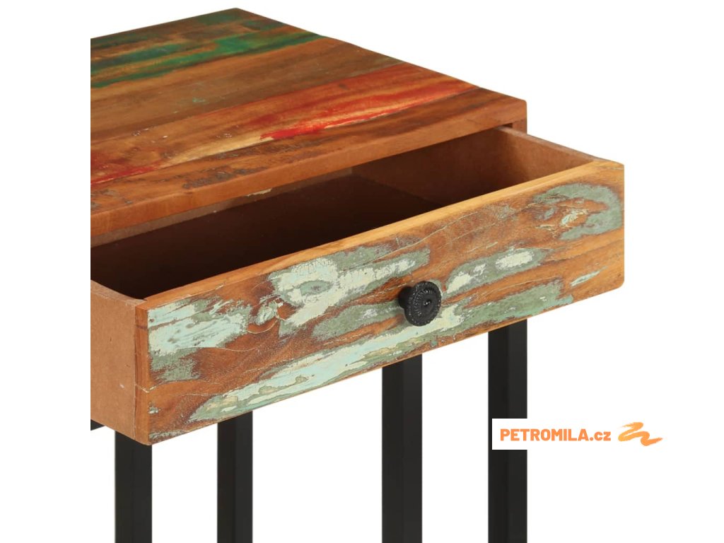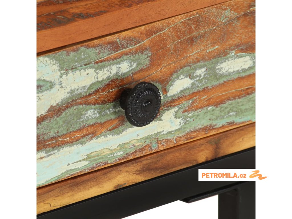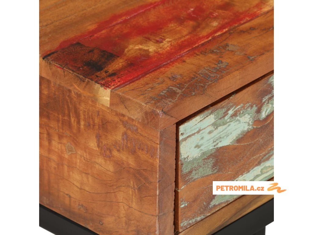 Stolek k pohovce je vyrobený z masivního recyklovaného dřeva, které se vyznačuje vlastnostmi celé řady různých dřevin, jako jsou borovice, teak, dub, mangovník, akácie atd. Toto dřevo je navíc je již zestárlé, zvětralé a vyschlé, takže se nesmršťuje ani neohýbá. Známky použití a jemná kresba dřeva odlišují každý kus nábytku od všech ostatních. V zásuvce najdete extra úložný prostor, kam si můžete uložit své potřeby.