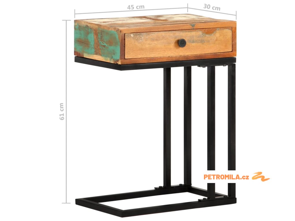 Odkládací stolek tvar U 45x30x61 cm masivní recyklované dřevo
