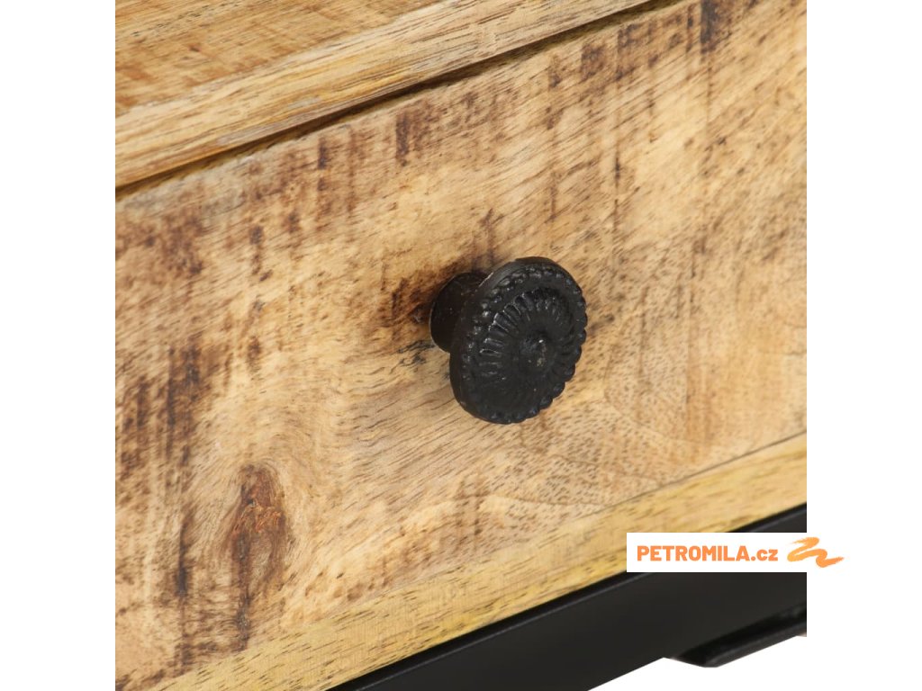 - Materiál: masivní hrubé mangovníkové dřevo s přírodním povrchem, práškově lakovaná ocel