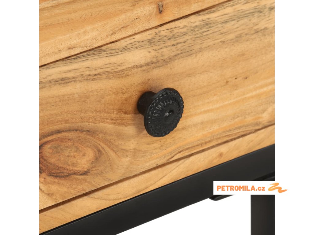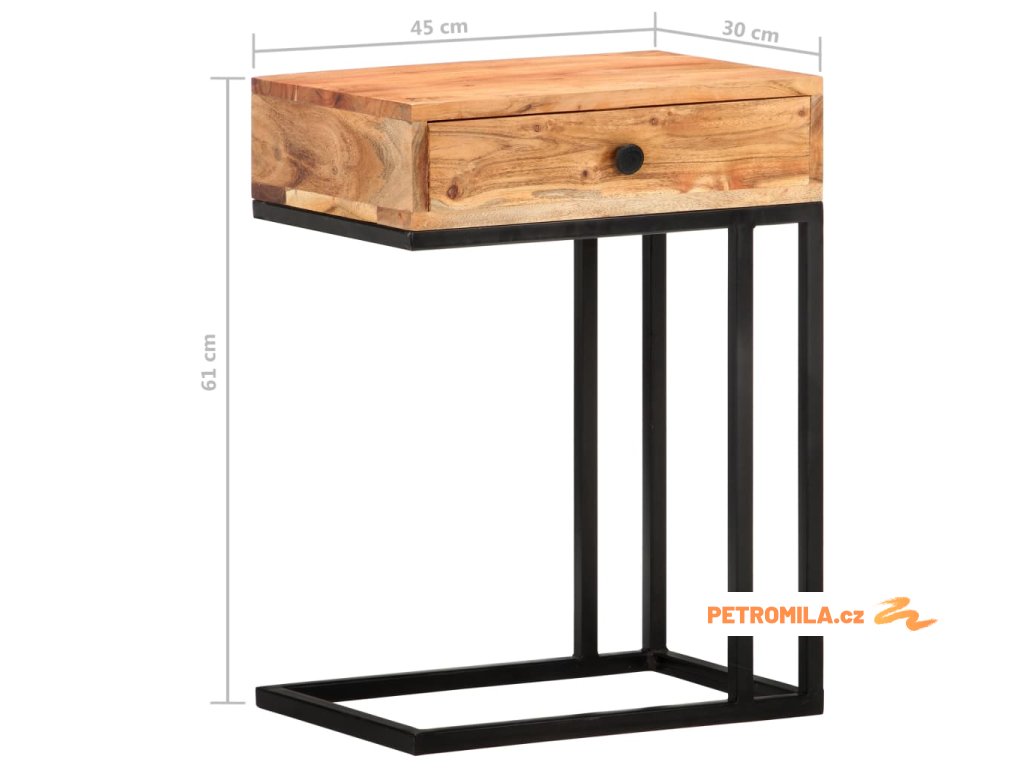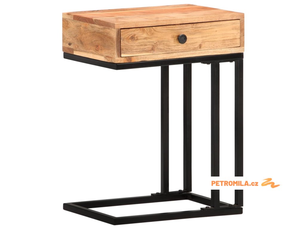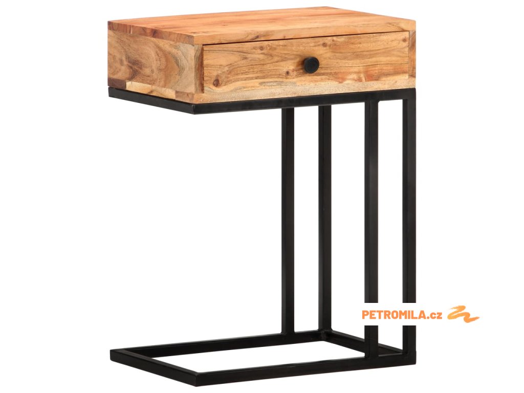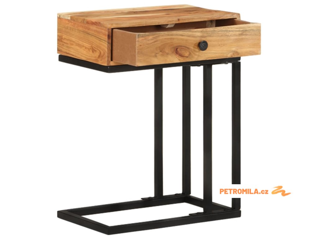 Masivní akáciové dřevo je tropické tvrdé dřevo s krásnou kresbou, které vydrží mnoho let. Tento stolek je zpevněný práškově lakovanou ocelí, takže je stabilní a robustní. 1 zásuvka poskytuje další úložný prostor pro uložení vašich věcí.