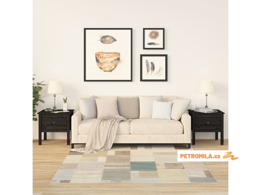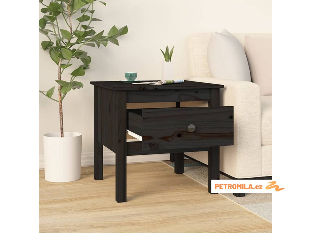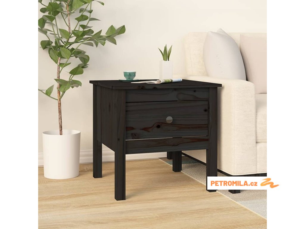 Odkládací stolky 2 ks černé 50 x 50 x 49 cm masivní borovice