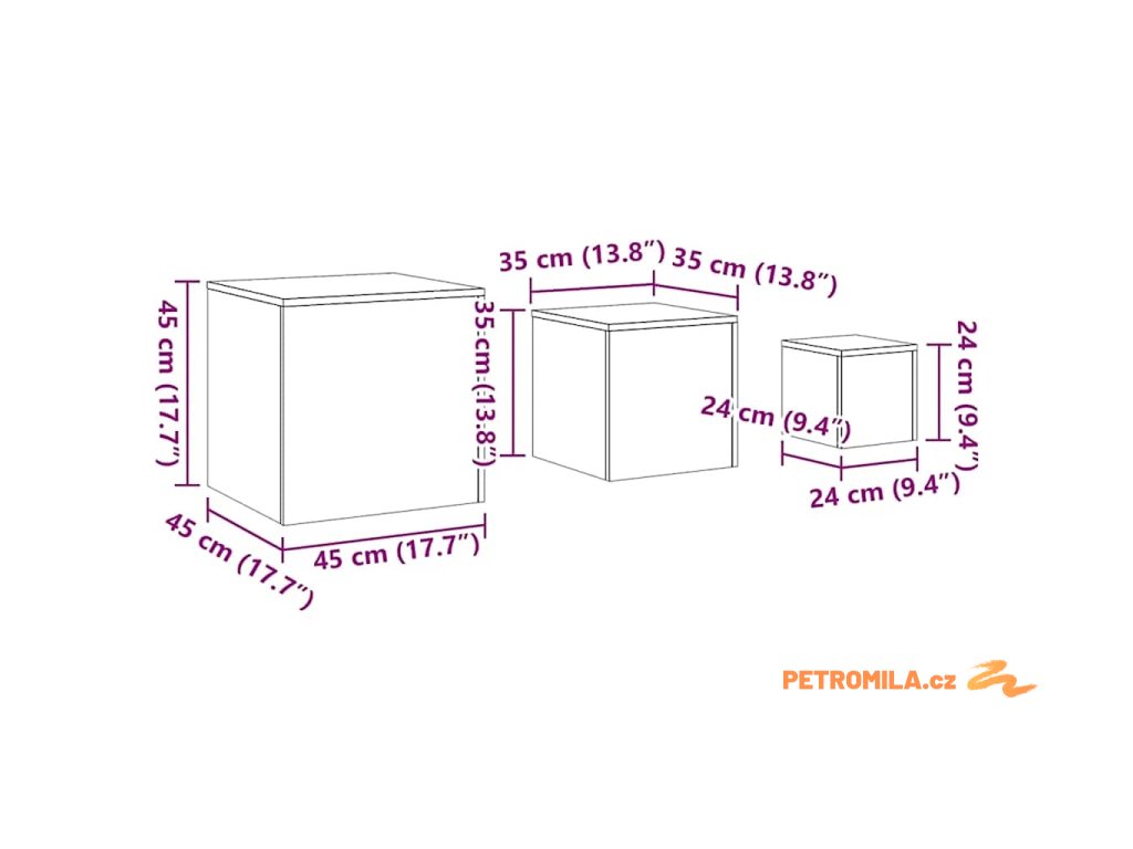 - Rozměry středního stolku: 35 x 35 x 35 cm (D x Š x V)