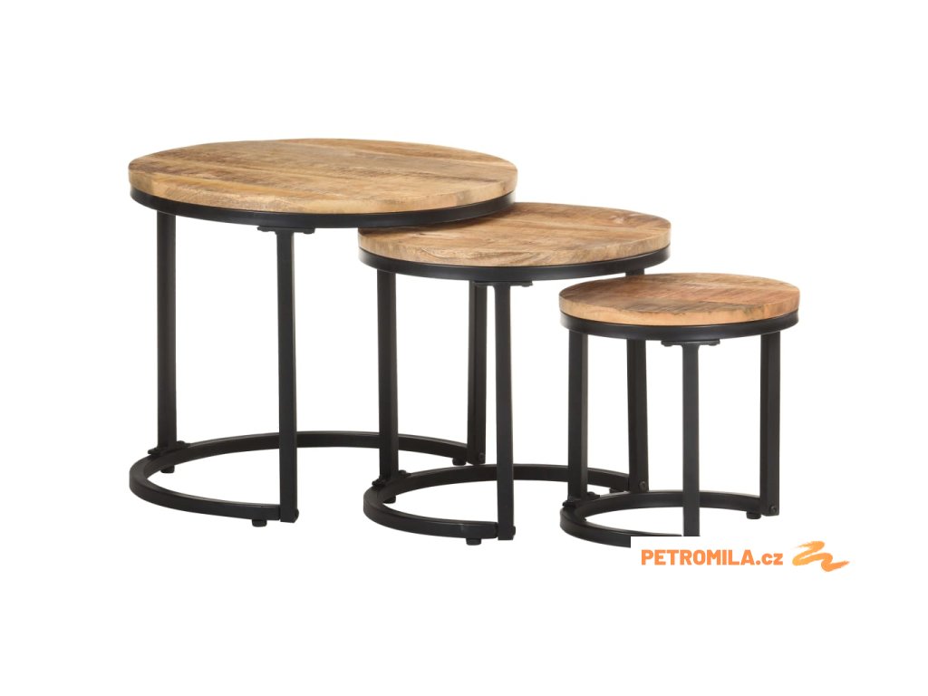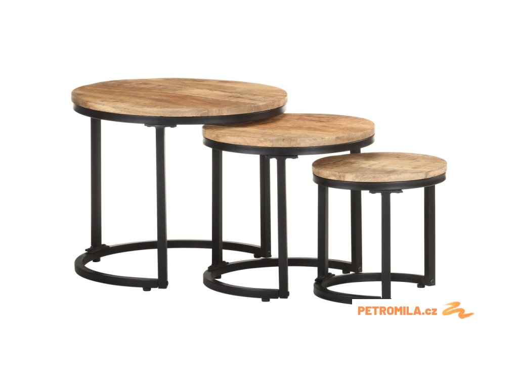 Odkládací stolky 3 ks hrubé mangovníkové dřevo