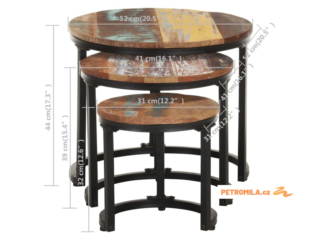 Odkládací stolky 3 ks masivní recyklované dřevo