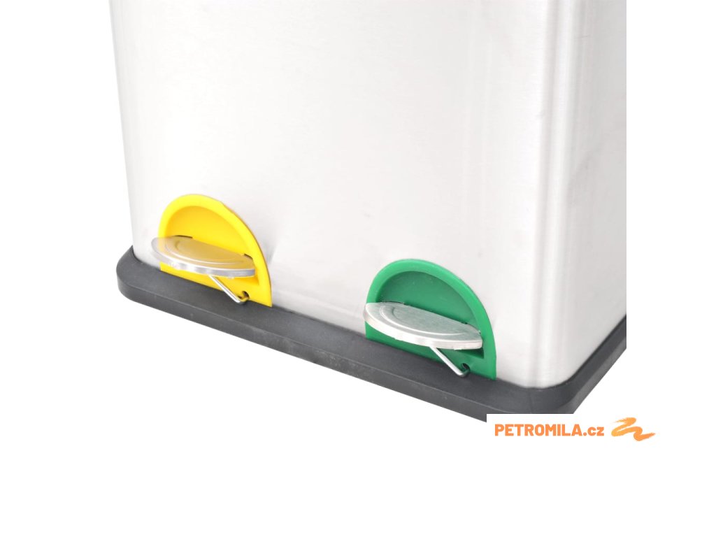 Díky nášlapnému systému můžete víka odpadkového koše snadno otevřít i zavřít. Sloty na pedály jsou barevně označeny pro snažší třídění vašeho odpadu. Tento recyklační koš má kryt vyroben z nerezu s matnou povrchovou úpravou, což mu dodává na elegantním vzhledu. Vnitřní nádoby, víka a základna jsou vyrobeny z velmi odolného polypropylenu (PP). Víko koše se snadno a tiše zavírá i otevírá. Pokud chcete zabránit zápachu odpadků, jednoduše uzavřete víko koše. Díky madlům se dá každá nádoba snadno vyjmout.