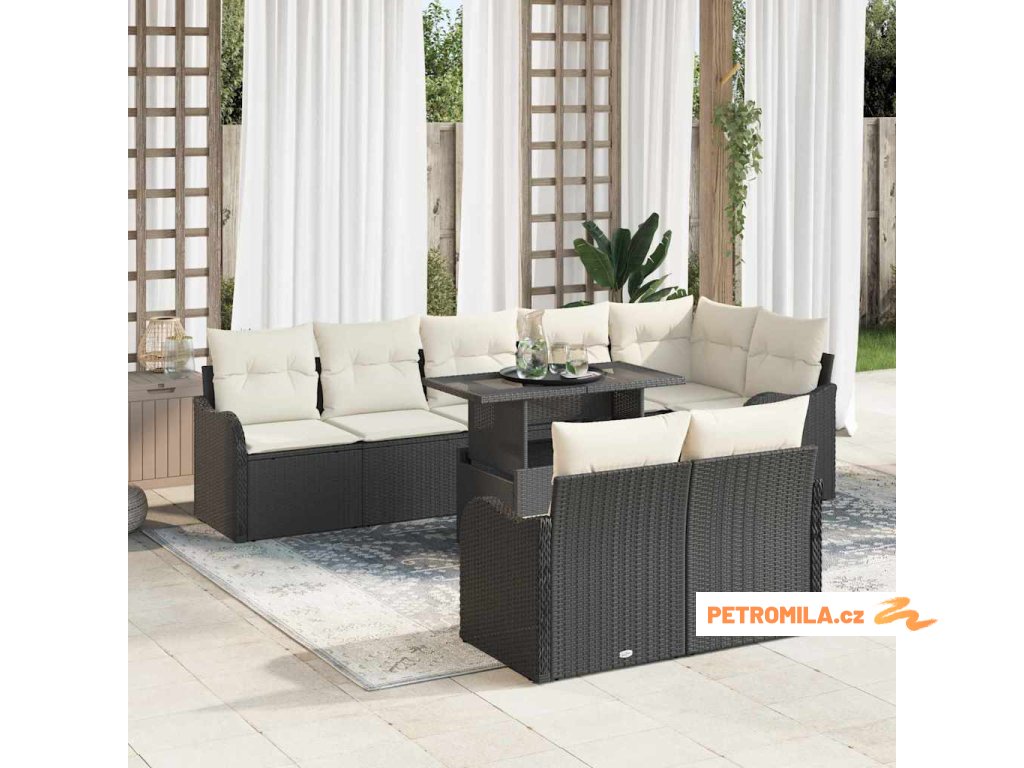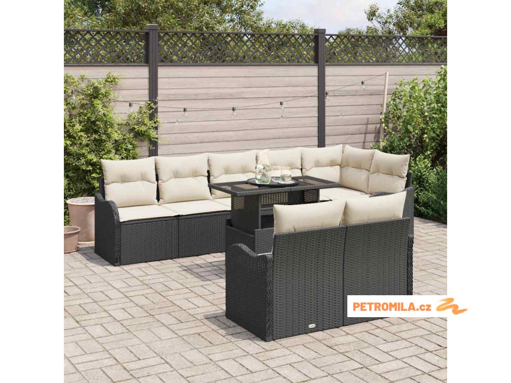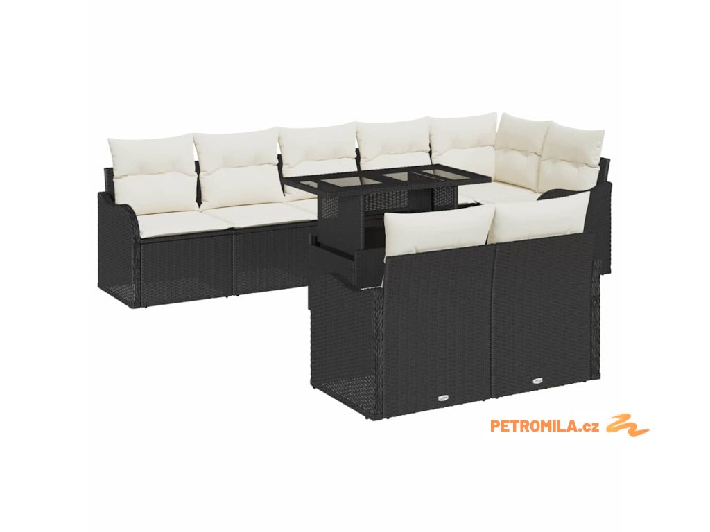 Odpočinková sada s polštářem 9 pcs Černá Poly ratan