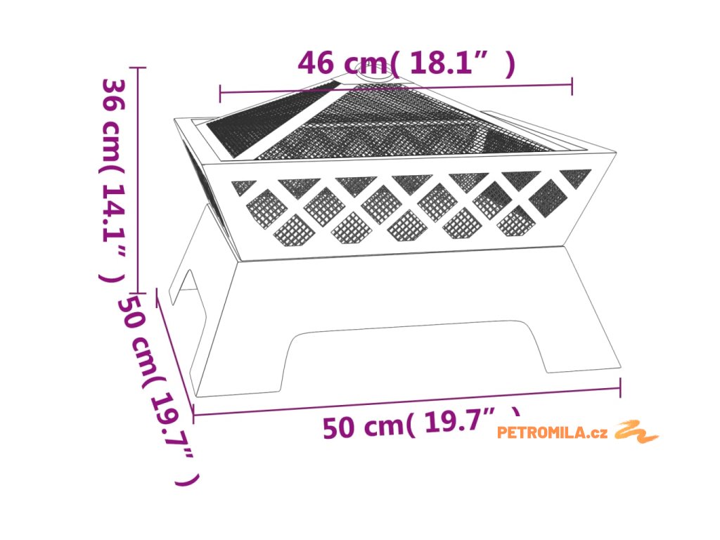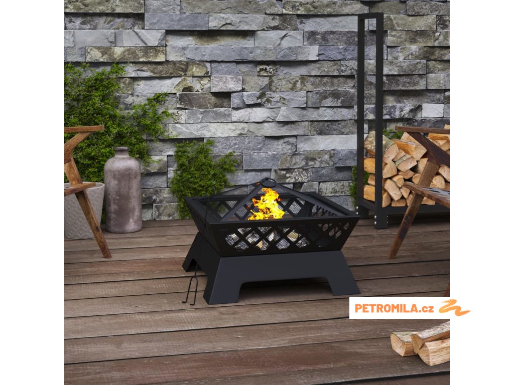 - Bezpečné příslušenství: Přes síťku budete moct sledovat hořící oheň a zároveň uzavírá ohniště pro větší bezpečnost a také zabraňuje vylétání jisker a nečistot. Přiložený kovový pohrabáč lze použít jak k sejmutí síťového krytu, tak k přerovnání polen.