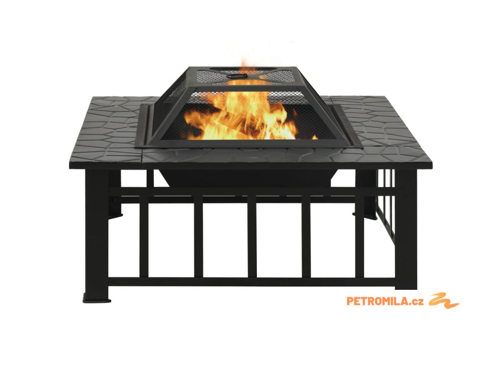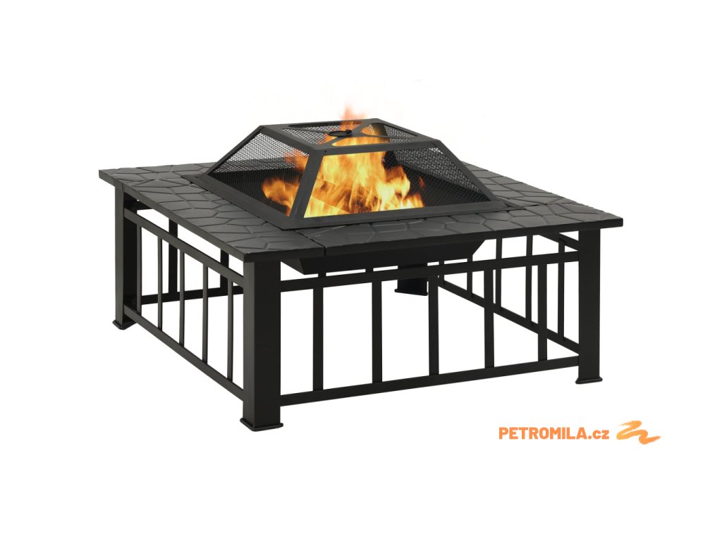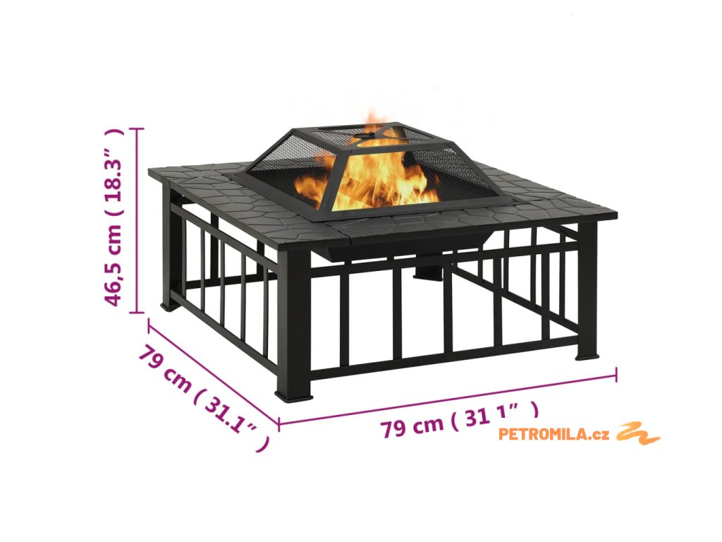 Ohniště s pohrabáčem 79 x 79 x 46,5 cm XXL ocel