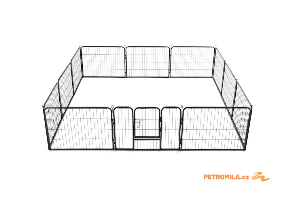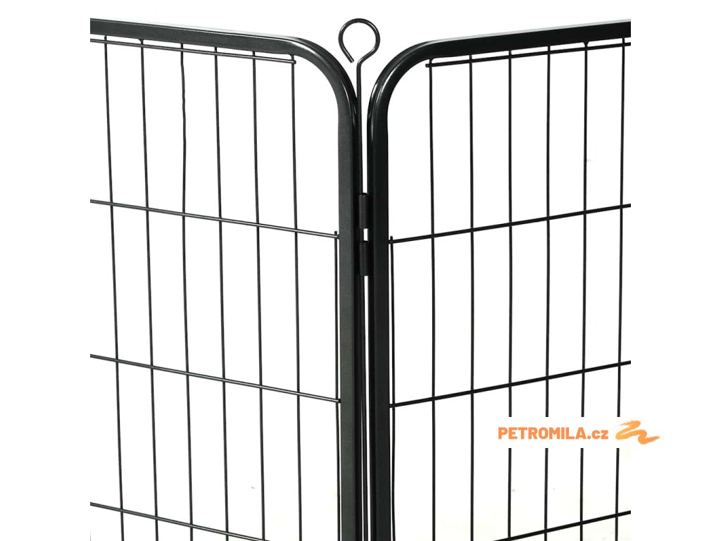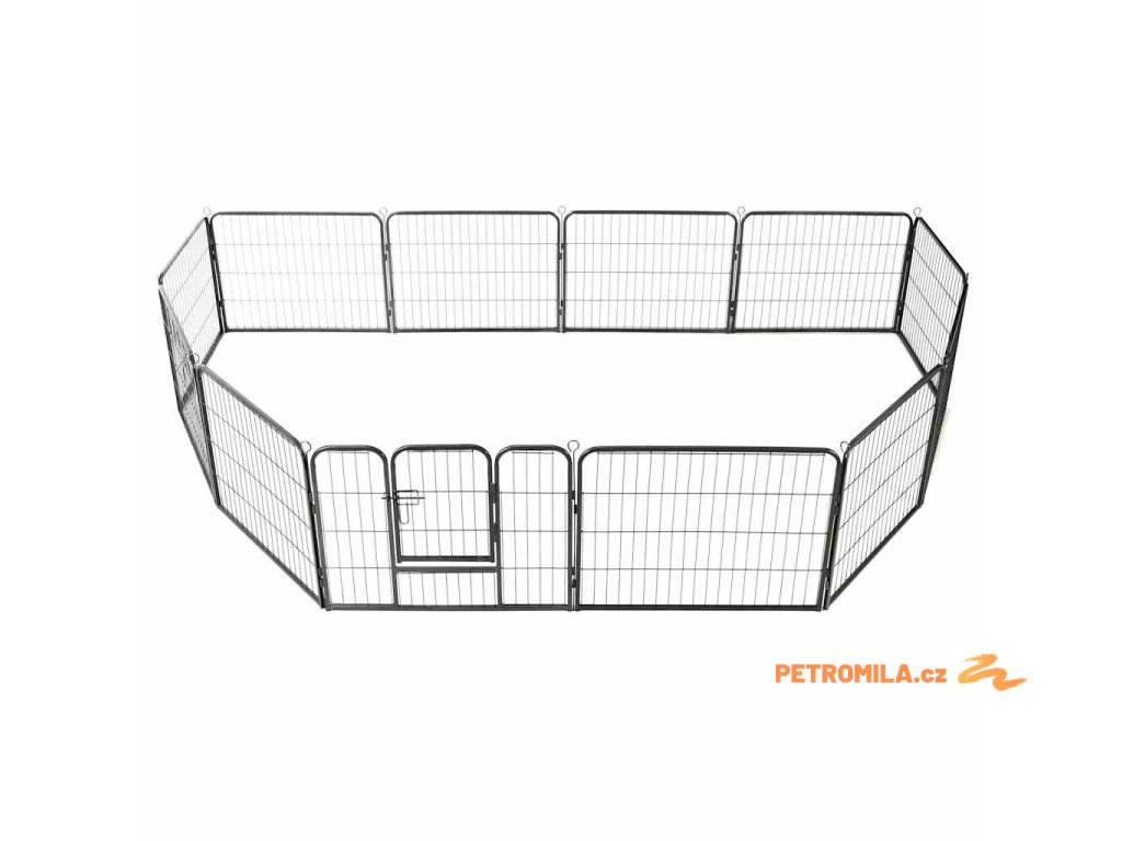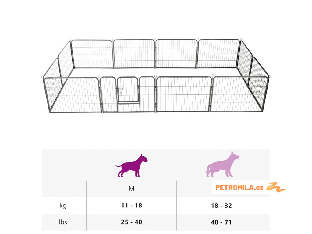 Psí výběh se dá snadno rozložit nebo složit. Skládá se ze 12 vysoce odolných panelů, přičemž každý panel lze snadno připojit k dalšímu, což vám umožní stavět ohrádku do různých tvarů. Výběh je opatřen závěsnými dvířky s bezpečnostní západkou, jež zajišťují snadný přístup. Ohrádka je pevná, odolná vůči povětrnostním vlivům a vyrobená z rezuvzdorné oceli s práškovým nástřikem, takže je vhodná pro venkovní i vnitřní použití. Součástí dodávky jsou i kolíky pro upevnění k zemi, které zajišťují bezpečnost ohrádky pro psy a dodávají jí stabilitu.