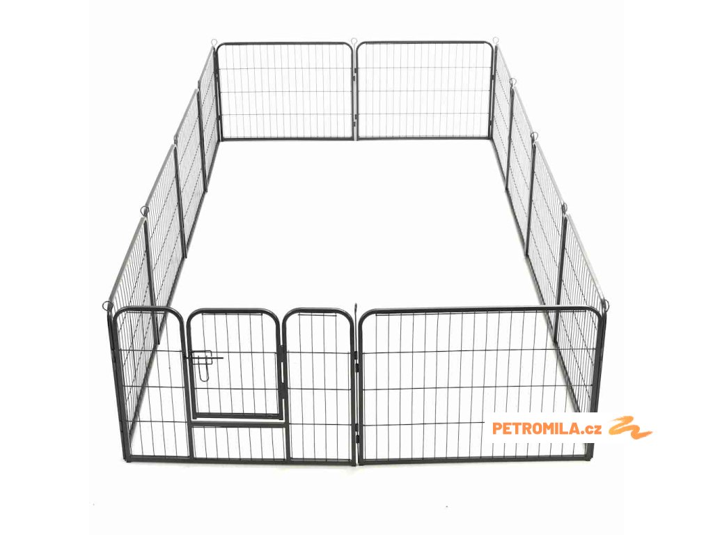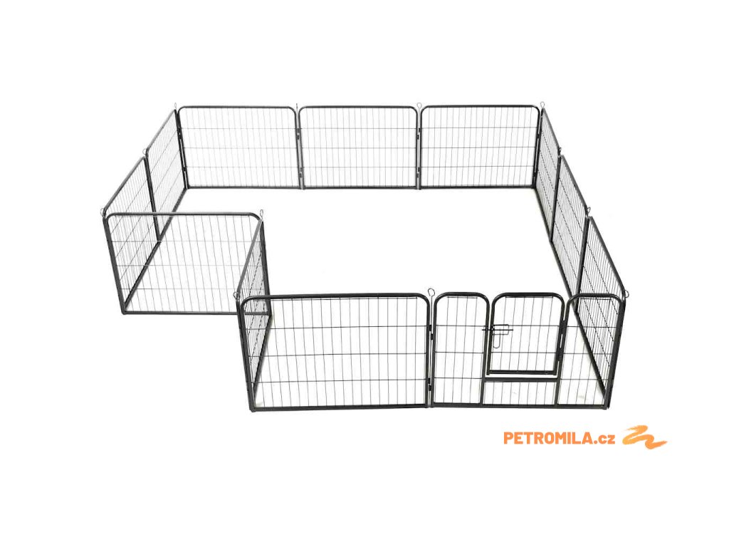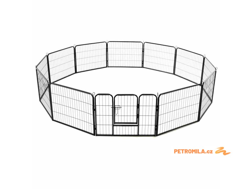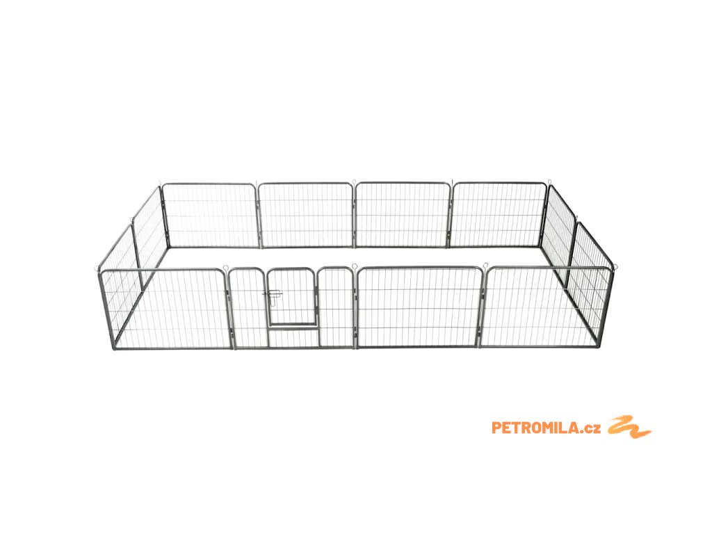 Psí výběh se dá snadno rozložit nebo složit. Skládá se ze 12 vysoce odolných panelů, přičemž každý panel lze snadno připojit k dalšímu, což vám umožní stavět ohrádku do různých tvarů. Výběh je opatřen závěsnými dvířky s bezpečnostní západkou, jež zajišťují snadný přístup. Ohrádka je pevná, odolná vůči povětrnostním vlivům a vyrobená z rezuvzdorné oceli s práškovým nástřikem, takže je vhodná pro venkovní i vnitřní použití. Součástí dodávky jsou i kolíky pro upevnění k zemi, které zajišťují bezpečnost ohrádky pro psy a dodávají jí stabilitu.