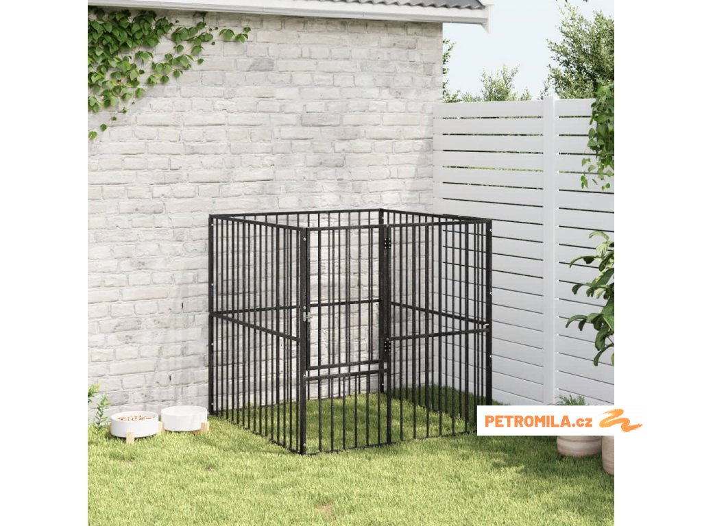 Ohrádka pro psy 4 panely černá pozinkovaná ocel